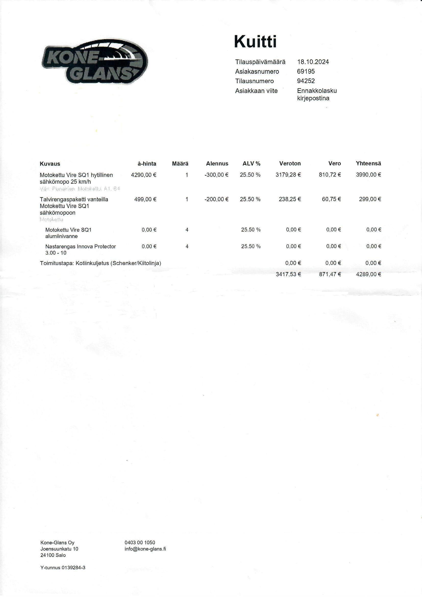 Motokettu Vire SQ1 hytillinen sähkömopo / invamopo / koppimopo, Järvenpää