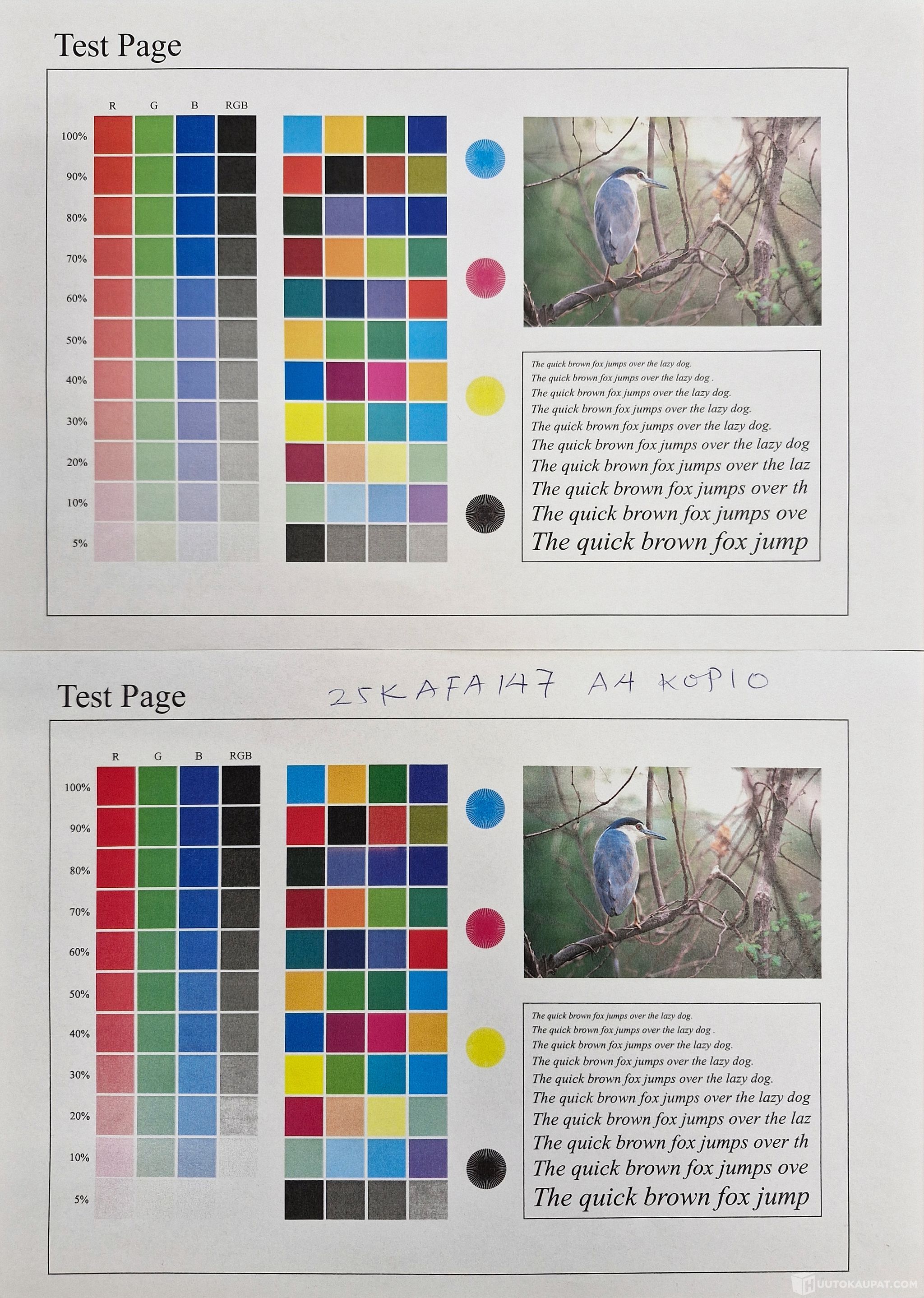 Tarvikkeita on runsaasti jäljellä. Värikasettien riittoisuudet ovat: musta 100%, cyan:52%, magenta: 100%, yellow: 100%. Nykyisillä kaseteilla voidaan tulostaa laskennallisesti 33 000 mustavalko - ja 11 000 värisivua. Tarkemmat tiedot liitteessä.