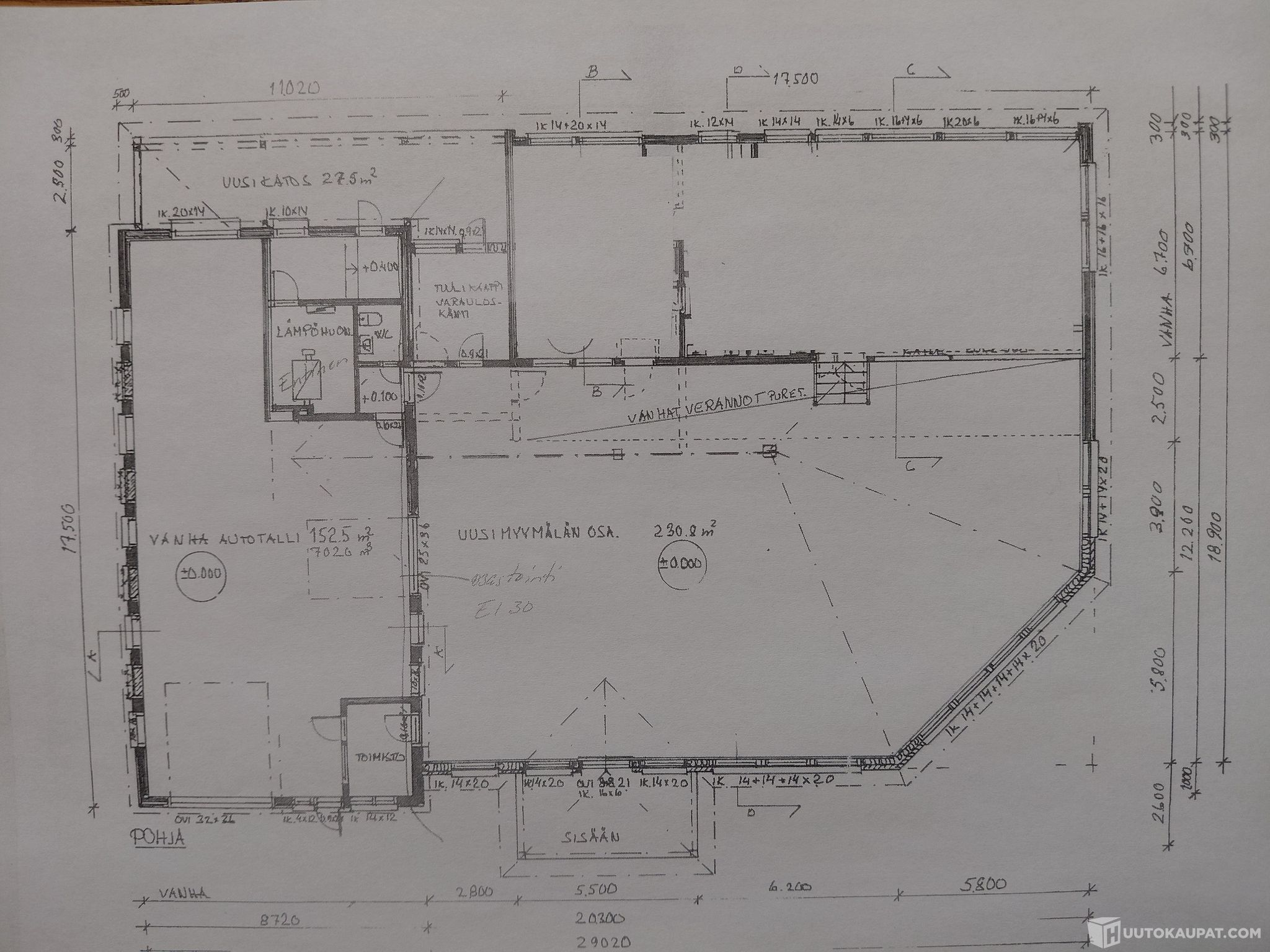 -Sallittu kerrosala 875 m2, rakennusoikeutta jäljellä 365 m2