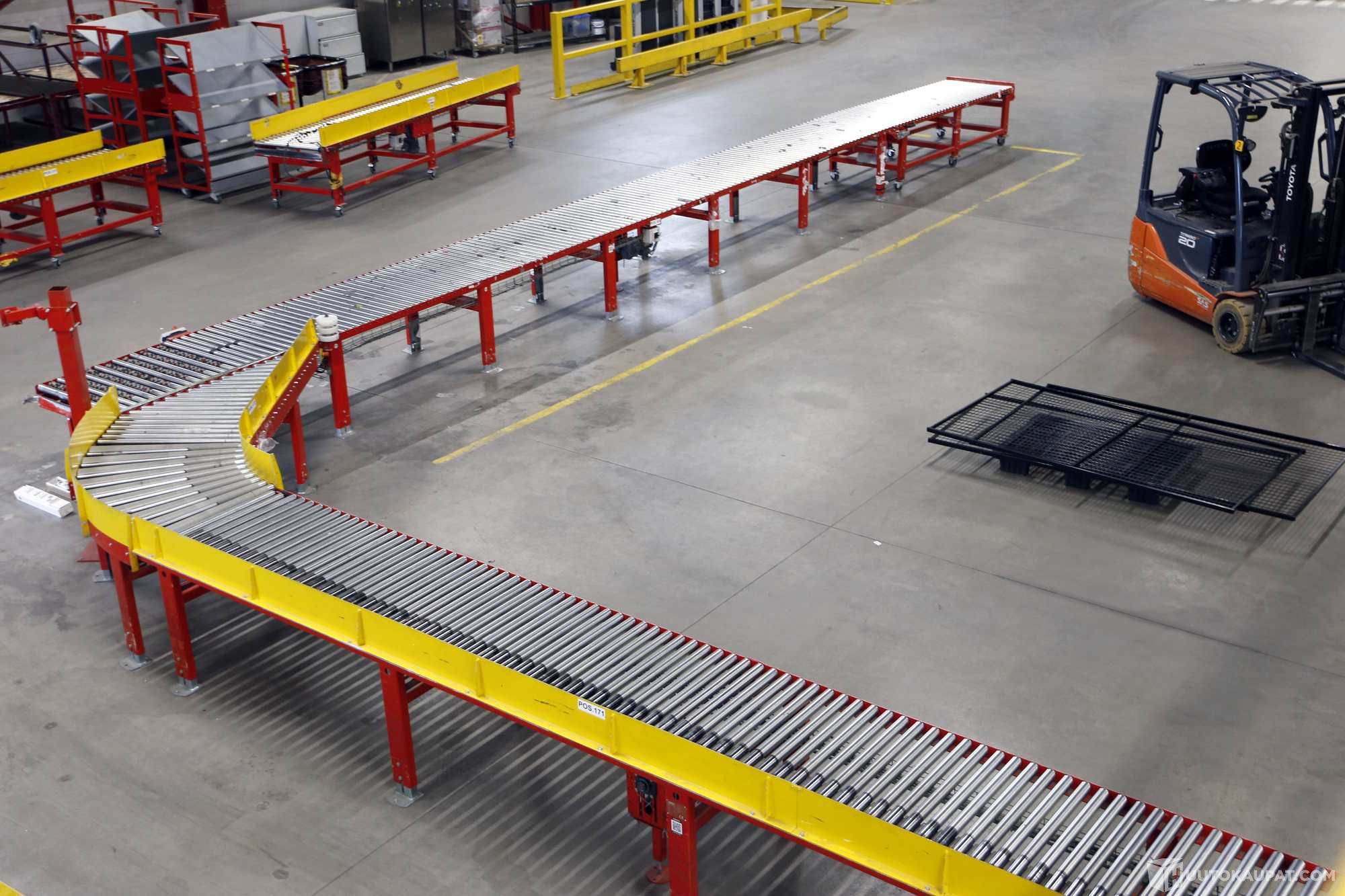 Ferroplan Oy:n valmistamia modulaarisia rullaratoja, jotka ovat olleet osana laajempaa kuljetinjärjestelmää. Teollisuustason laitteet.