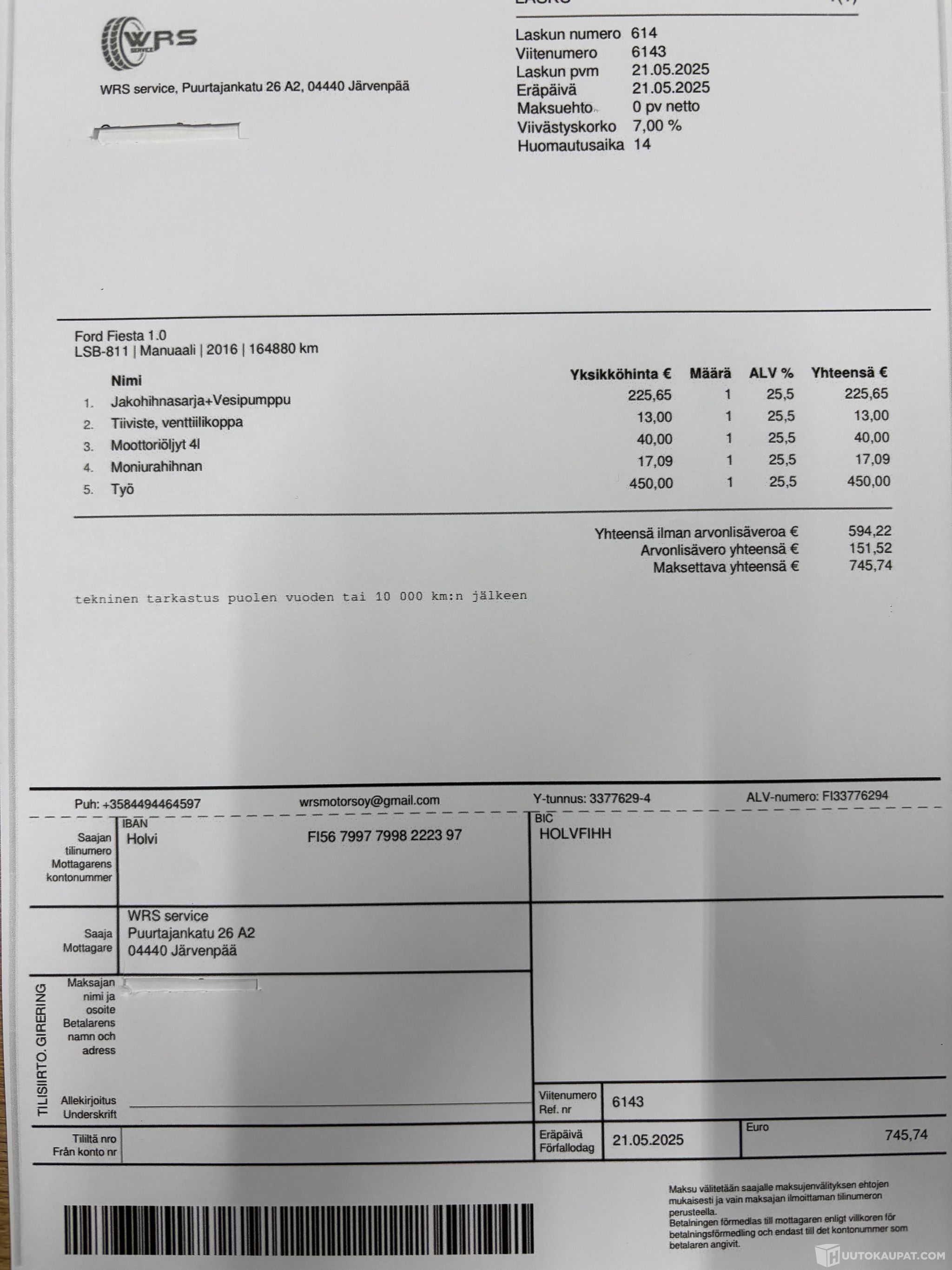 Verkkopankkimaksu kaikilla suomalaisilla pankeilla tai lasku. Maksuaika 24 tuntia tarjouksen hyväksymisestä. Huomaathan, että laskulla maksaessa maksu kirjautuu viiveellä ja saat maksumuistutuksia kunnes maksu on kirjautunut järjestelmäämme.
