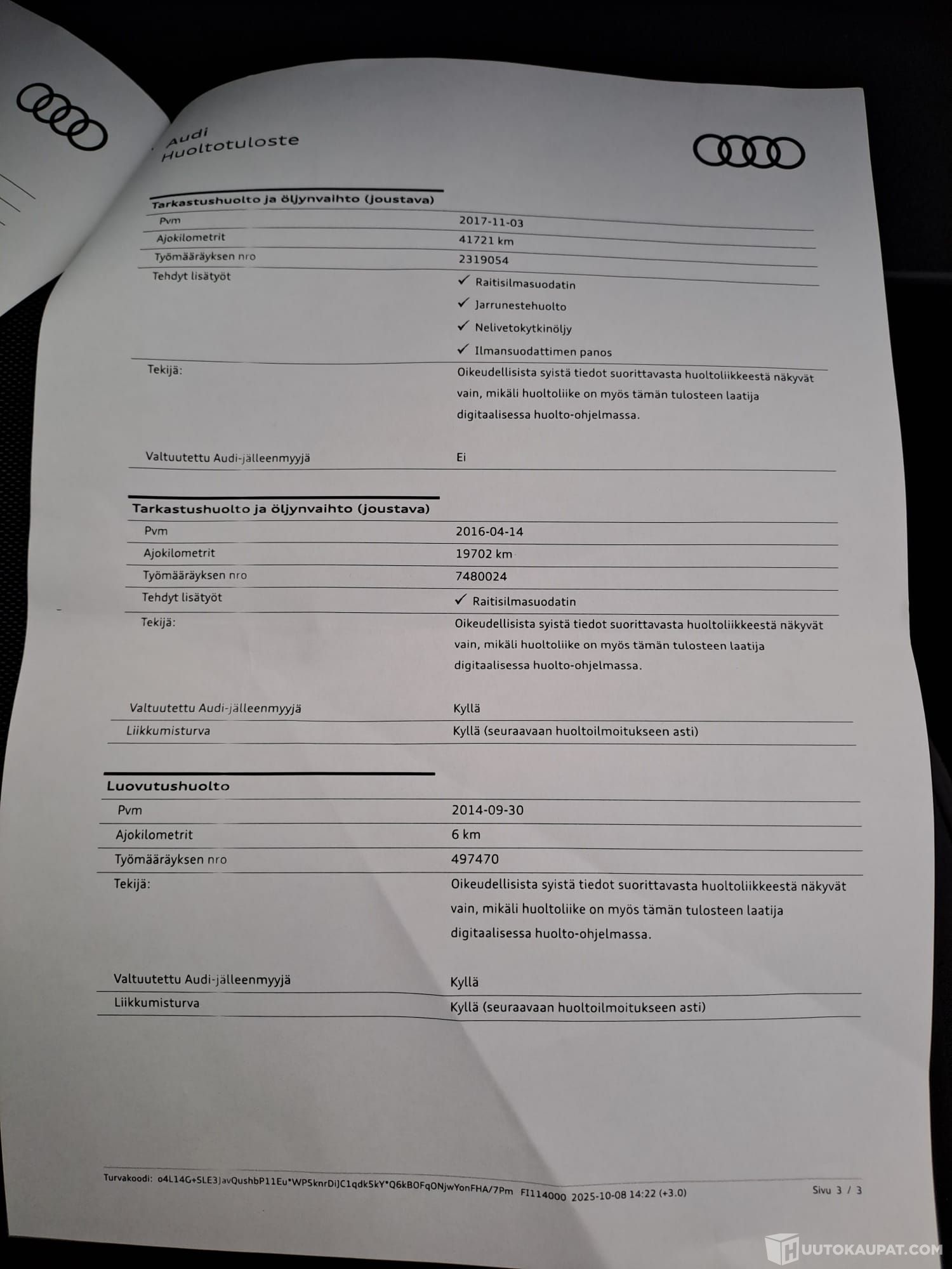 Huomioithan, että huutokauppaan osallistuminen ilman ostoaikomusta on kiellettyä. On sinun vastuullasi tutustua kohteeseen ja siitä annettuihin tietoihin ennen tarjoamista, tervetuloa myös tutustumaan autoon paikan päälle. Mikäli kohteesta herää mitä tahansa kysyttävää, olethan ystävällisesti yhteydessä meihin tai Huutokaupat.comin asiakaspalveluun, kiitos!