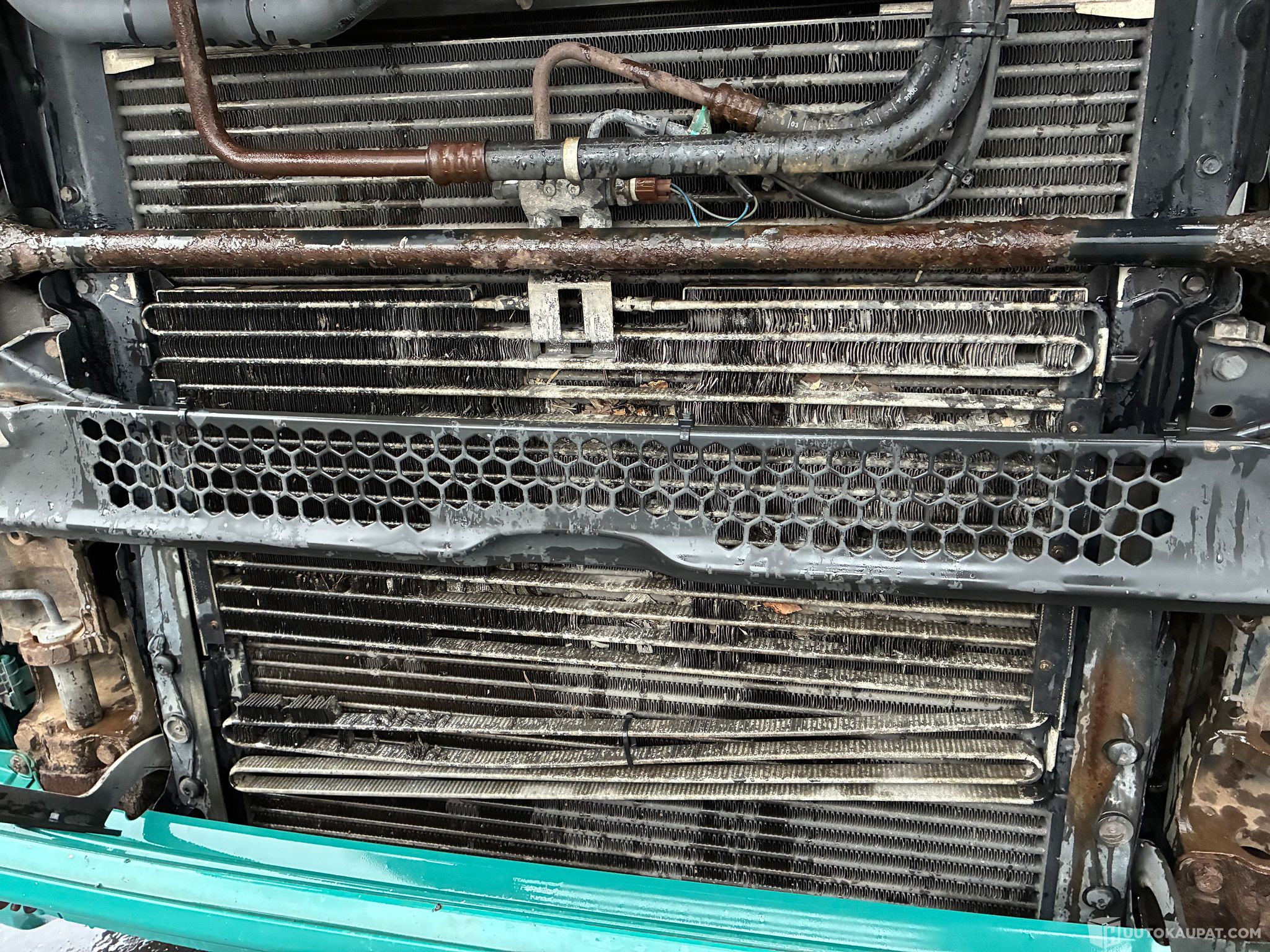 Avaimesta lähti käymään ja pienellä koelenkillä tuntui vaihteisto toimivan normaalisti. ABS:n merkkivalo paloi samoin jäähdytysnesteen merkkivalo, kuljettajan puoleinen pyyhkijä ei toimi. Paisuntasäiliö hieman vajaa, ilmastoinnin lauhdutin ulkoisesti hapettunut. Kuvat kertovat enemmän.