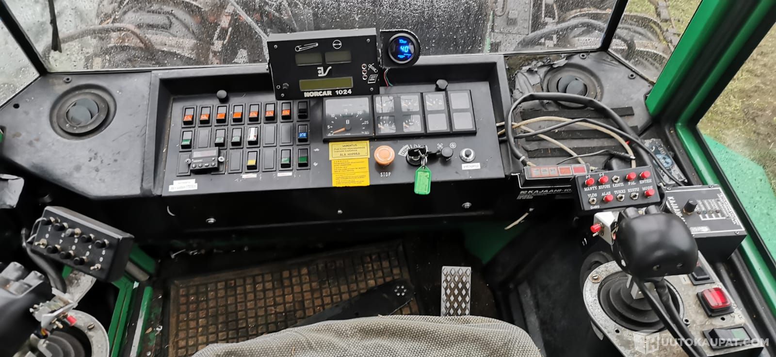 Vähän hydrauliikan öljyvuotoja, kourassa tappivälyksiä.