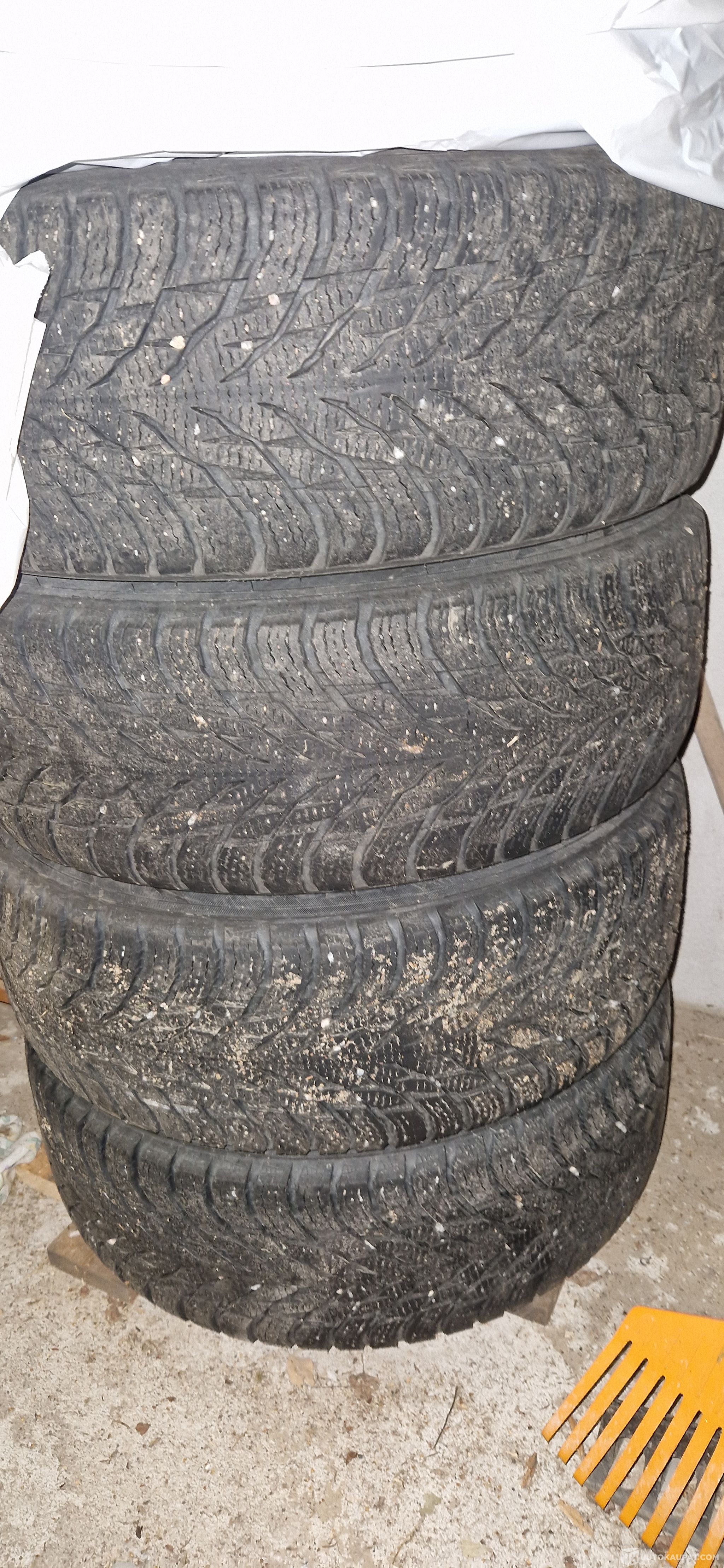 Renkaat vaihto kunnossa. Kesä renkaissa kantit kulunut kun oli pyöränkulmat perseellään. Talvipyörissä n,4mm pintaa (hakkapeliittan kitkat)