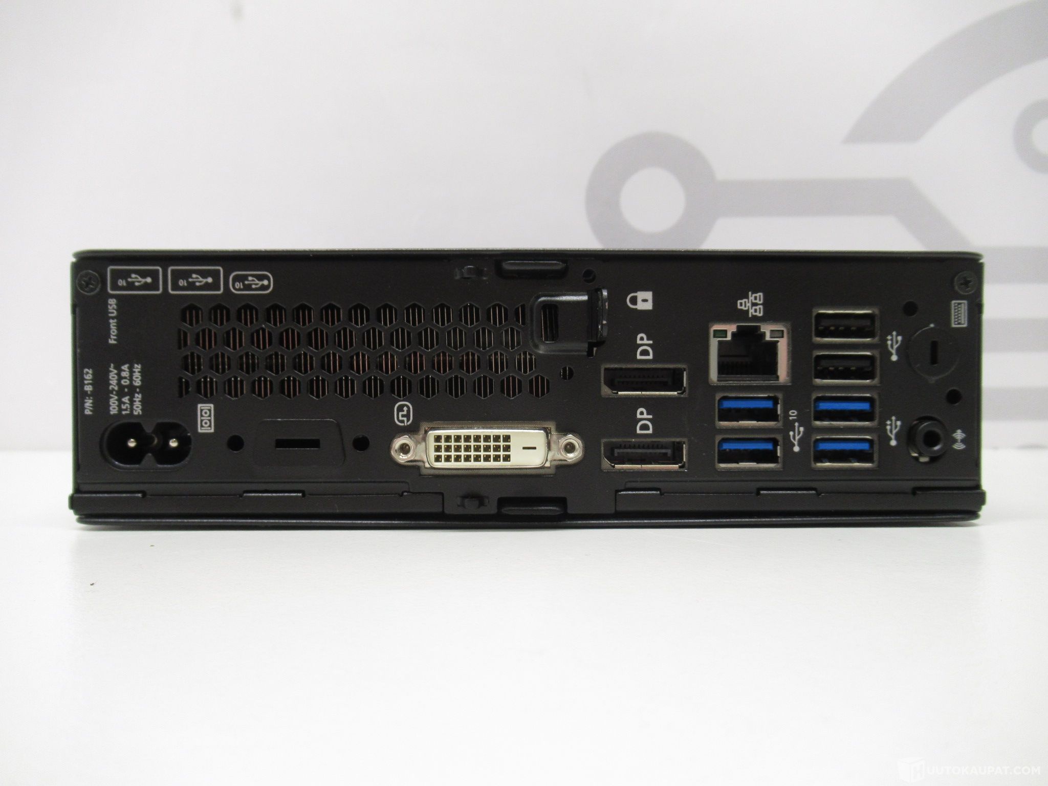 Takaliitännät: 2 kpl USB 2.0, 2 kpl USB 3.1 Gen 1, 2 kpl USB 3.1 Gen 2, RJ45, DVI-D, 2 kpl DisplayPort, ääniliitin
