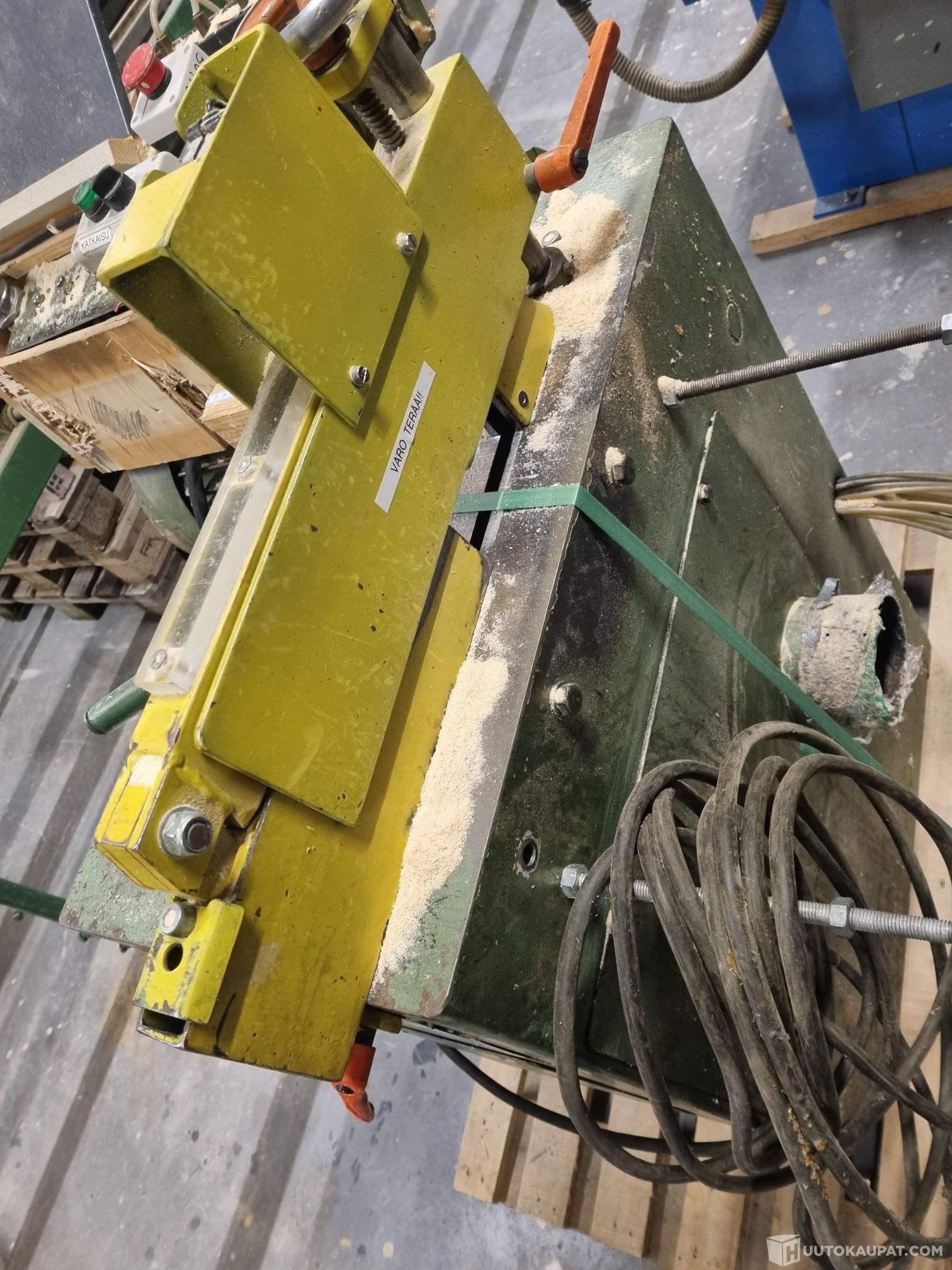 Katkaisusaha WACO KS 300. 8/77 kone no 34016-350. Moottoriteho 5,5 kW. Terän halkaisija 450 mm. Sahassa pneumaattinen puristus. Painonappikäynnistys. Paineilmatoimisia automaattivasteita 5 kpl. Syöttösuunta vasemmalta oikealle. Kuvassa näkyvät rullaradat kuuluvat kauppaan. Liitäntä ulkoiseen imujärjestelmään.