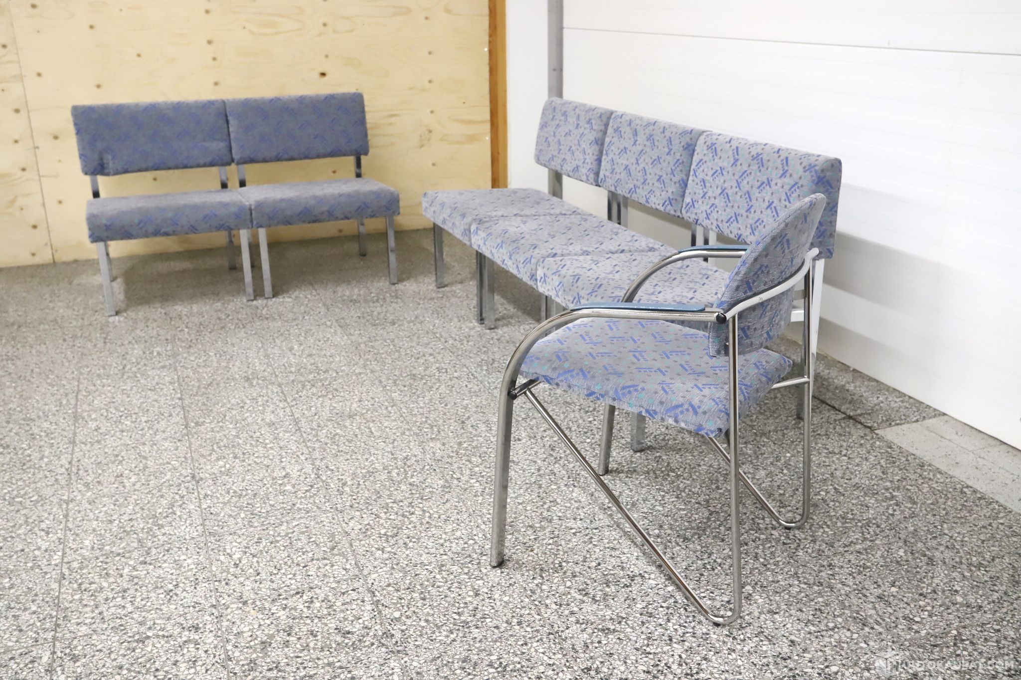 Nojatuoleja 5 kpl. Istuinkorkeudet 40cm, kokonaiskorkeudet 75cm, leveydet 60cm, syvyydet 60cm.