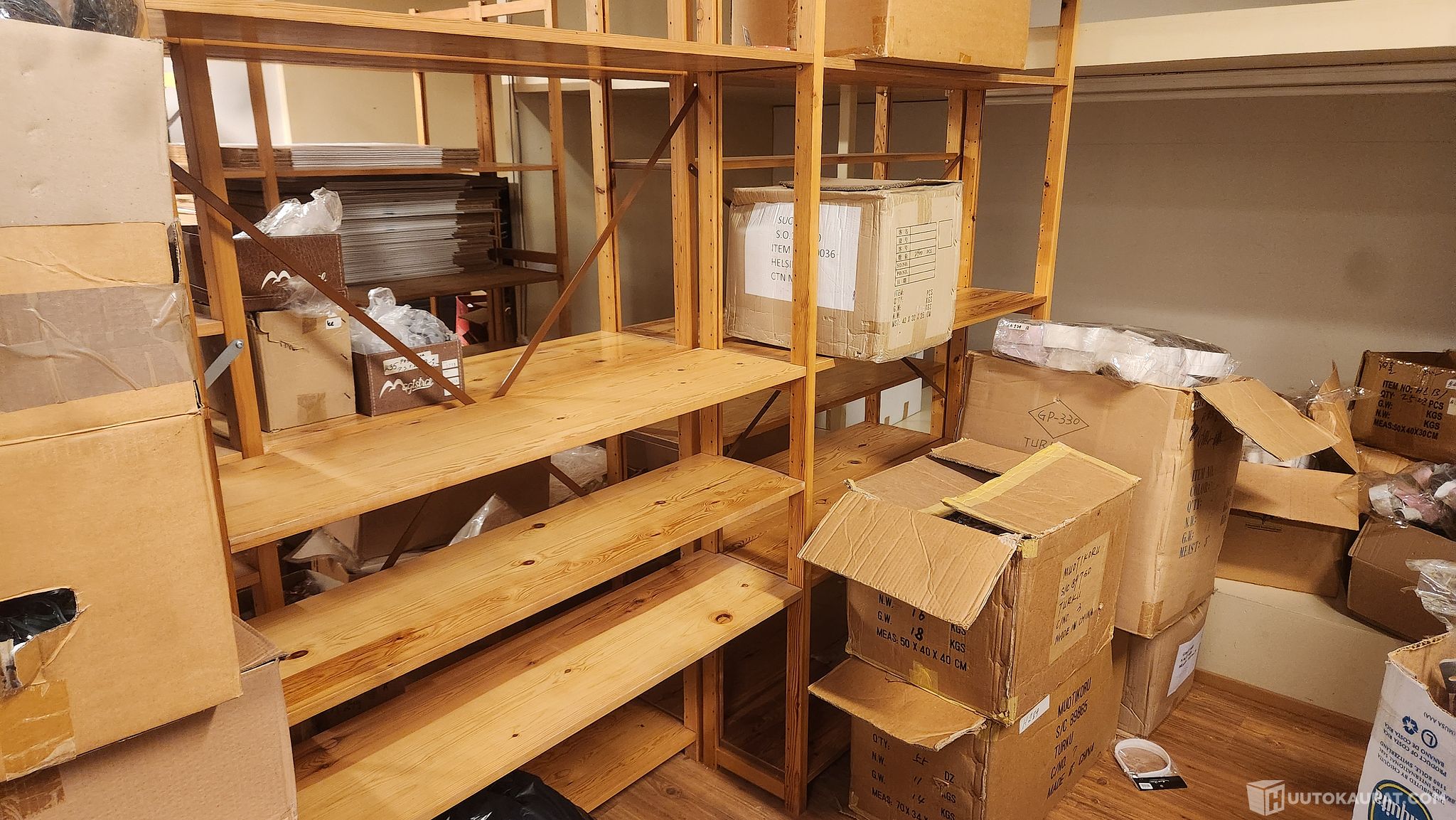Käytettyä siistiä varastohyllyä.