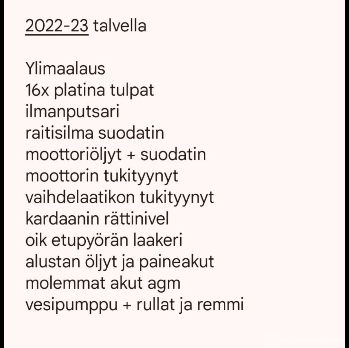 -ABC-alusta, paineakut vaihdettu sekä järjestelmä huuhdeltu hetki sitten.