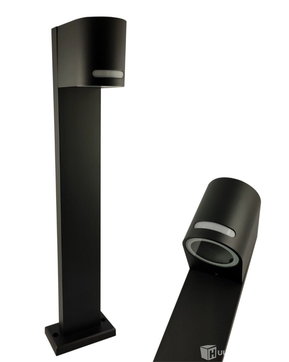 Struhm Forest 50 -puutarhapylväsvalaisin on musta, GU10-lamppua käyttävä ulkovalaisin.