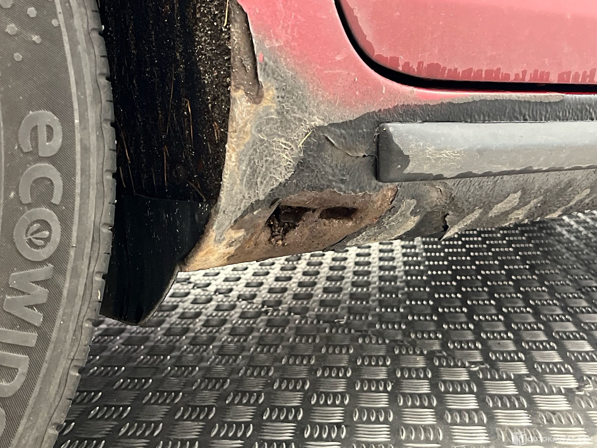 Autossa katsastuksesta tullut hylätty, koska helmoissa ruostetta pitäisi korjata ja jarruremontti tehdä. Ajoaikaa 13.11 asti.