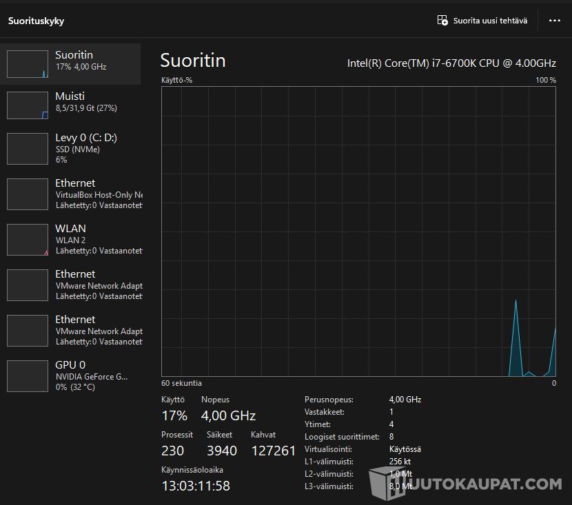 HP Z240 tehotyöasema jossa i7-6700k, 16gb ddr4, 2tb samsung ssd, nvidia 1660ti näytönohjain.