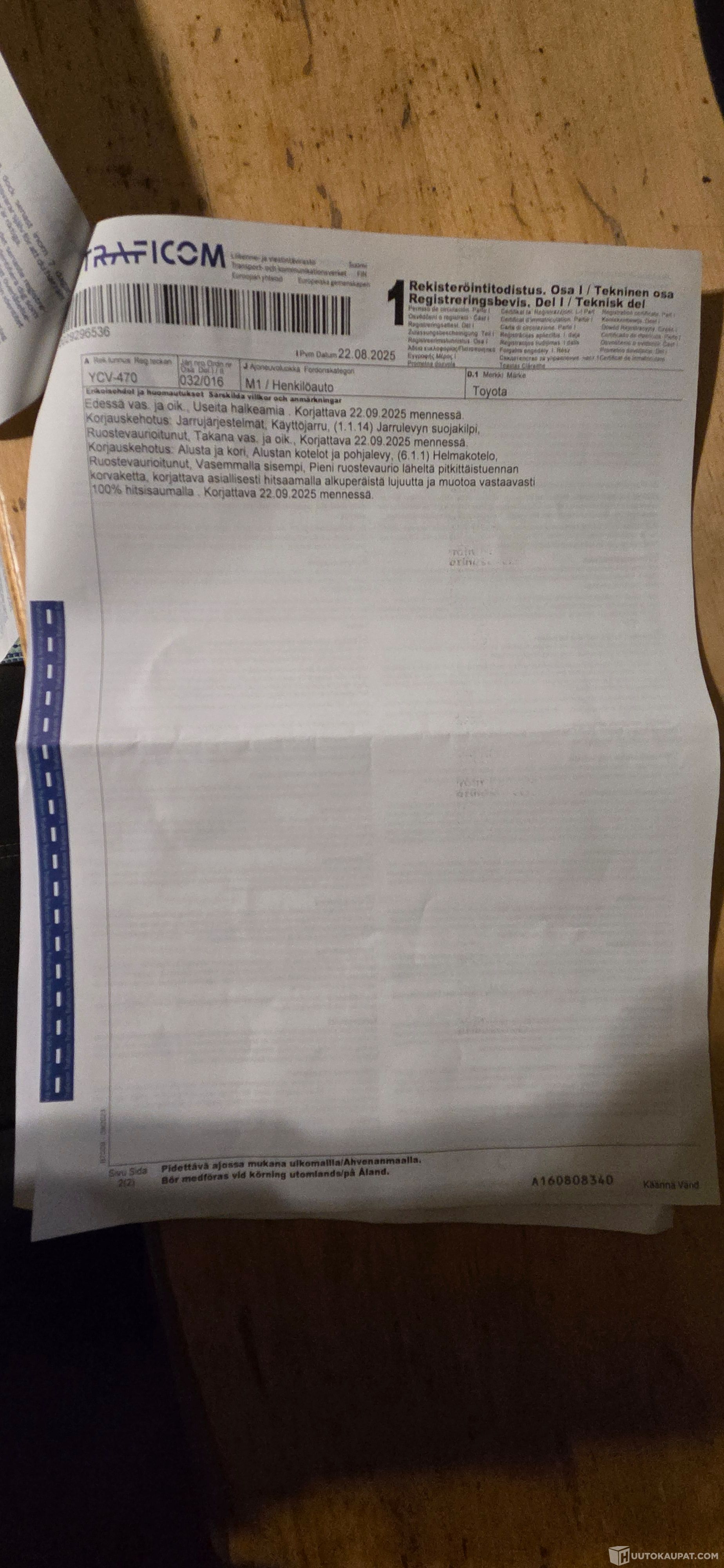 Kaikki viat korjattu mitä edellisessä katsastuksessa huomautuksissa tullut