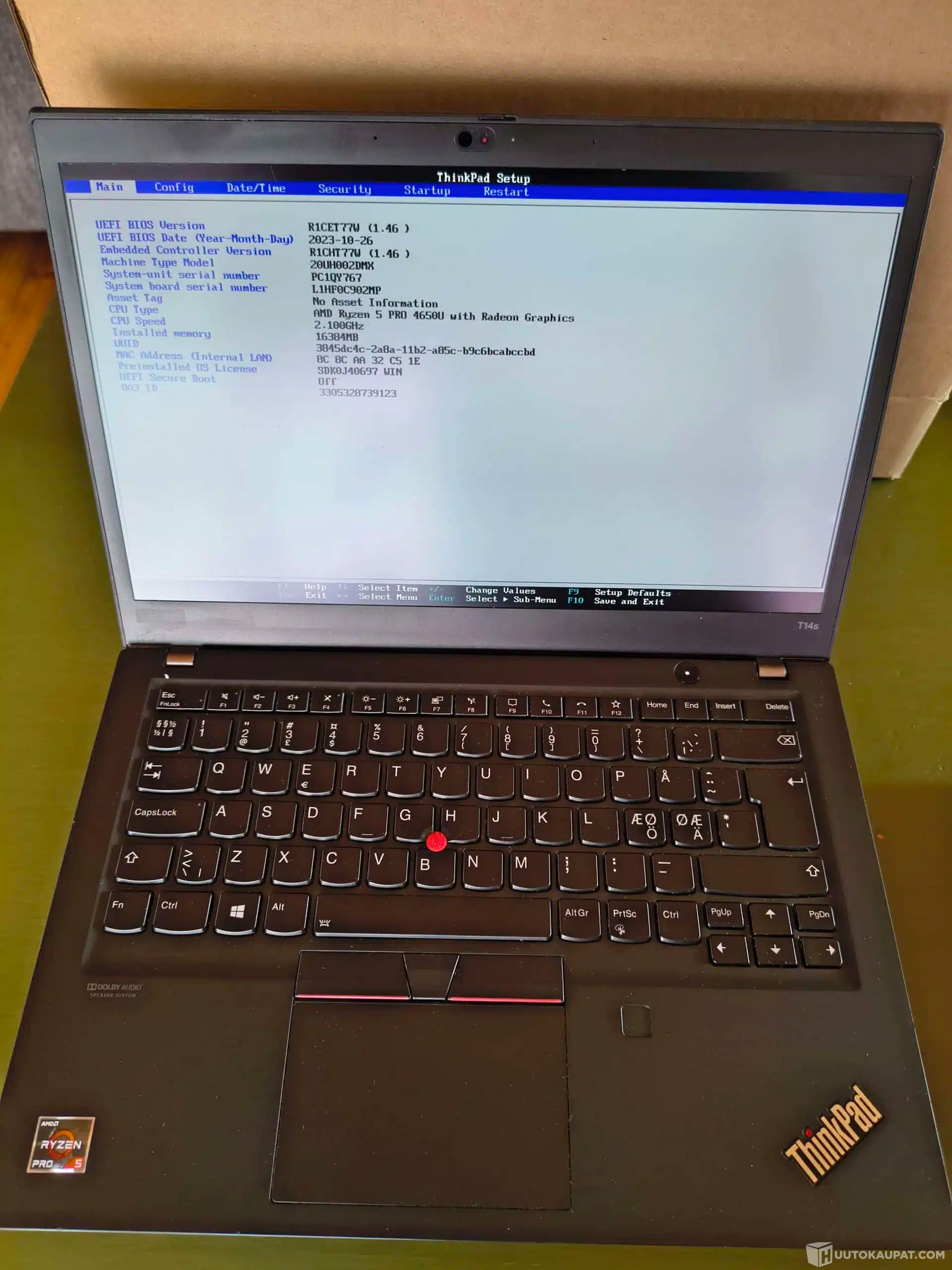 Lenovo T14s g1, Ryzen 5 pro, 16gb, 256gb ssd, Liperi