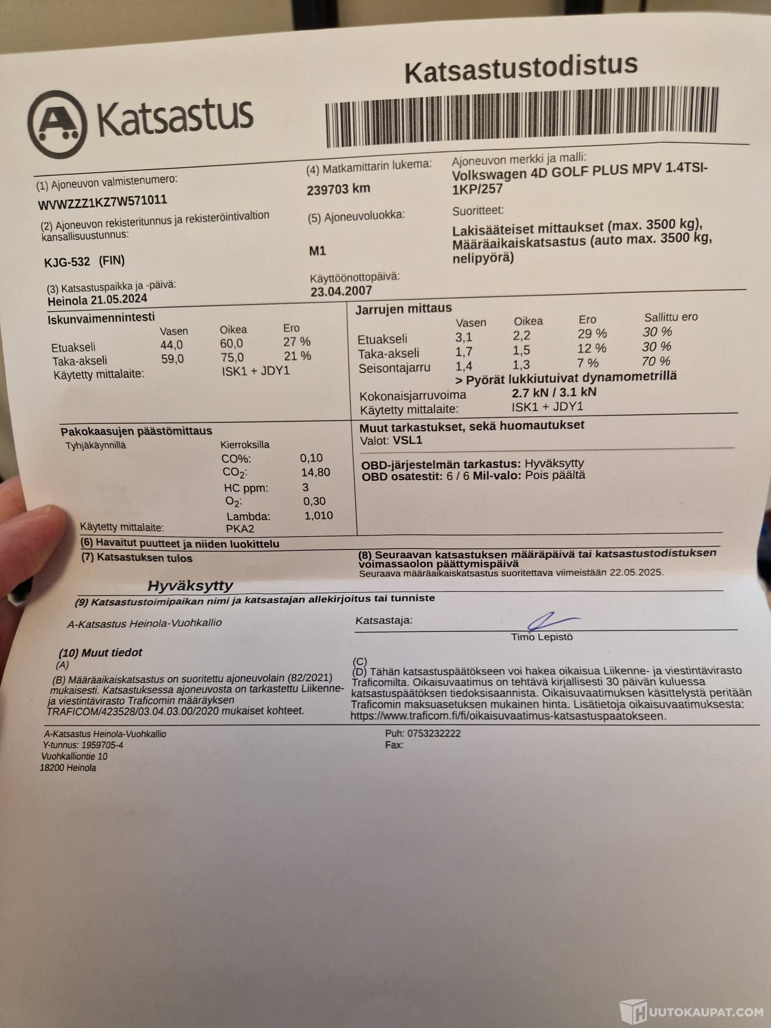 Auto katsastettava välillä: 21.5.2024 - 22.5.2025