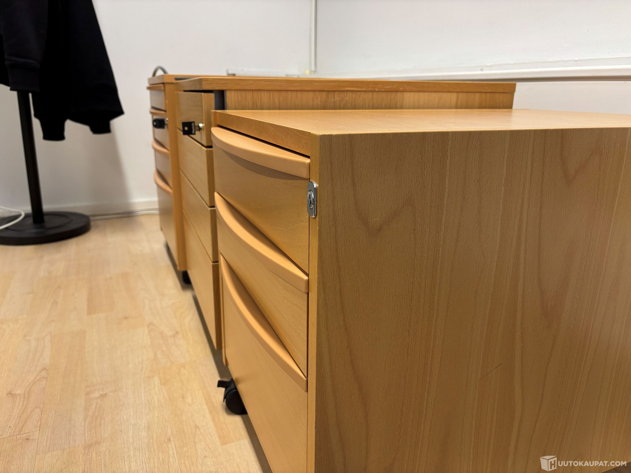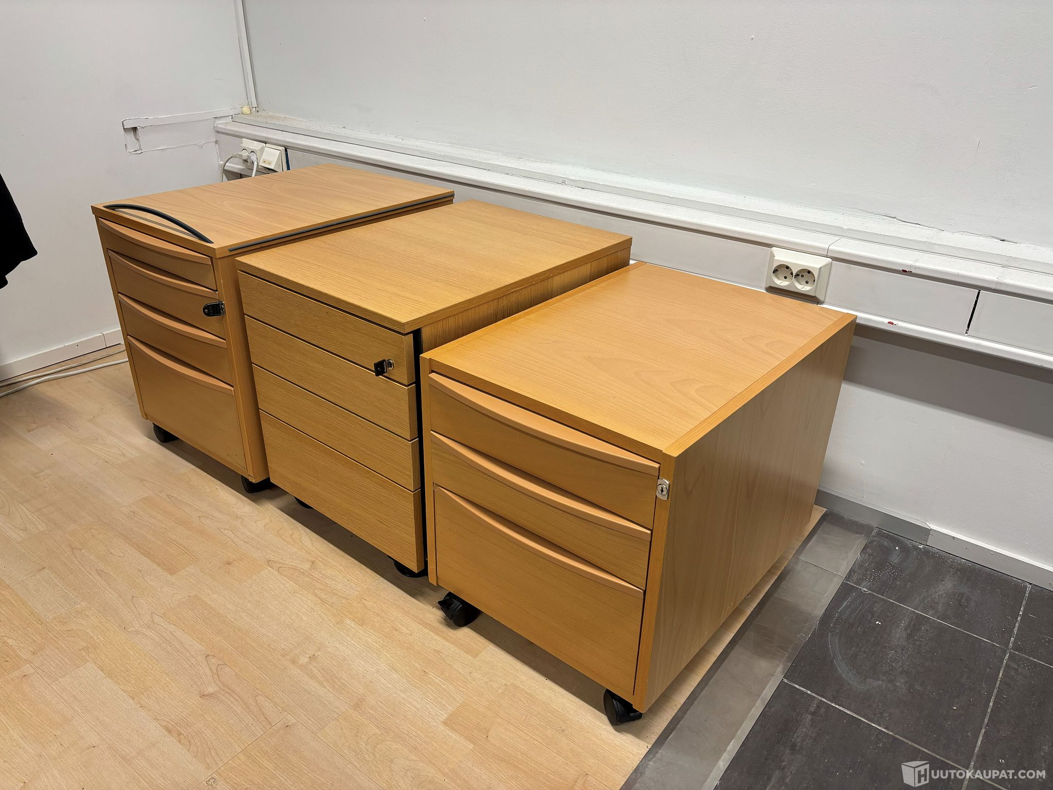 Laatikostot, pyökki + tammi (3kpl). Kahdessa avaimet mukana.