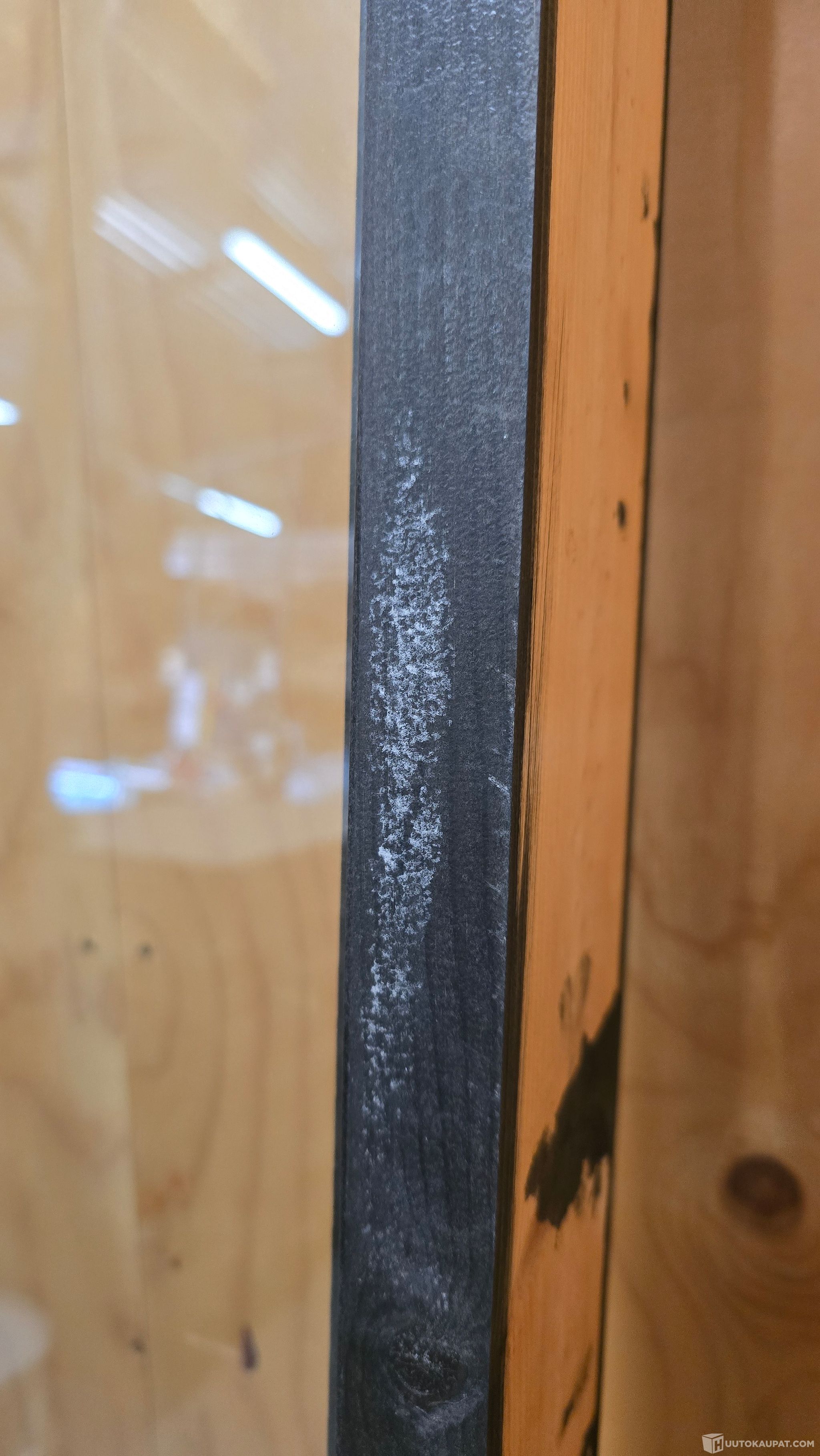 Karmissa jälkiä, muuten ehjä ovi.