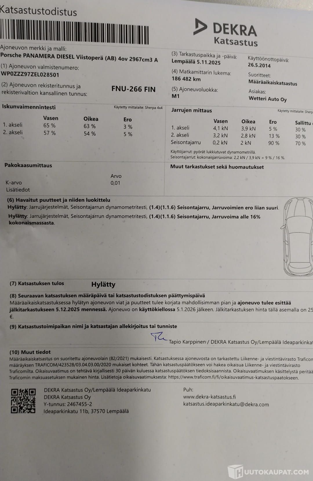 - Käsijarrusta hylky leimalla (kts. kuvat)