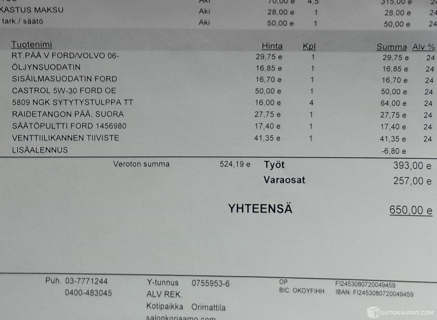 Korjaukset: perushuoltoja tehty aina tarvittaessa, EGR-venttiili vaihdettu kesällä -25.