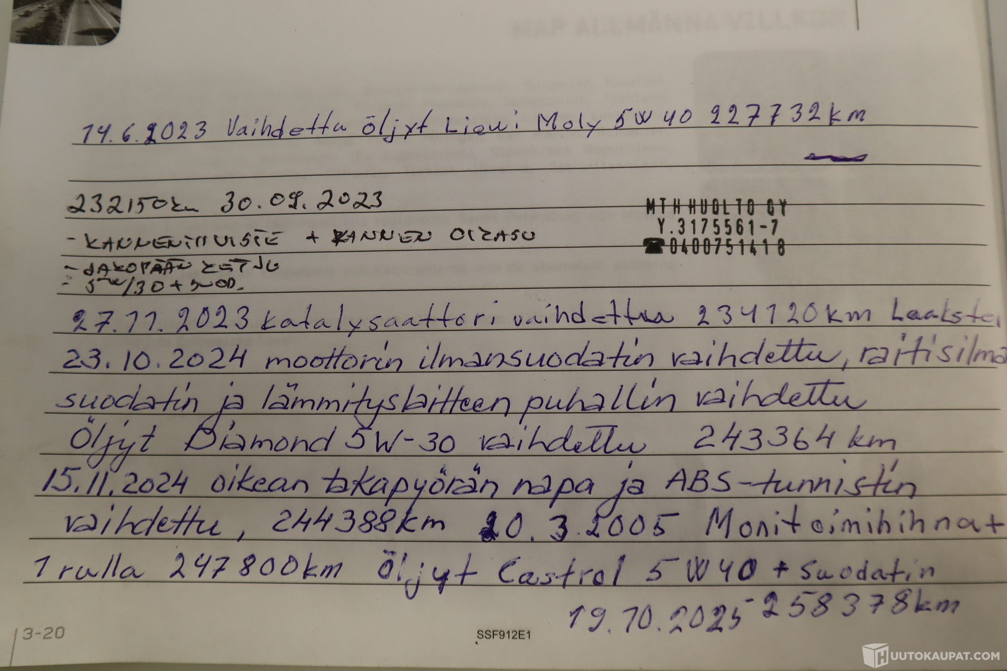 Huoltohistoria: paperinen