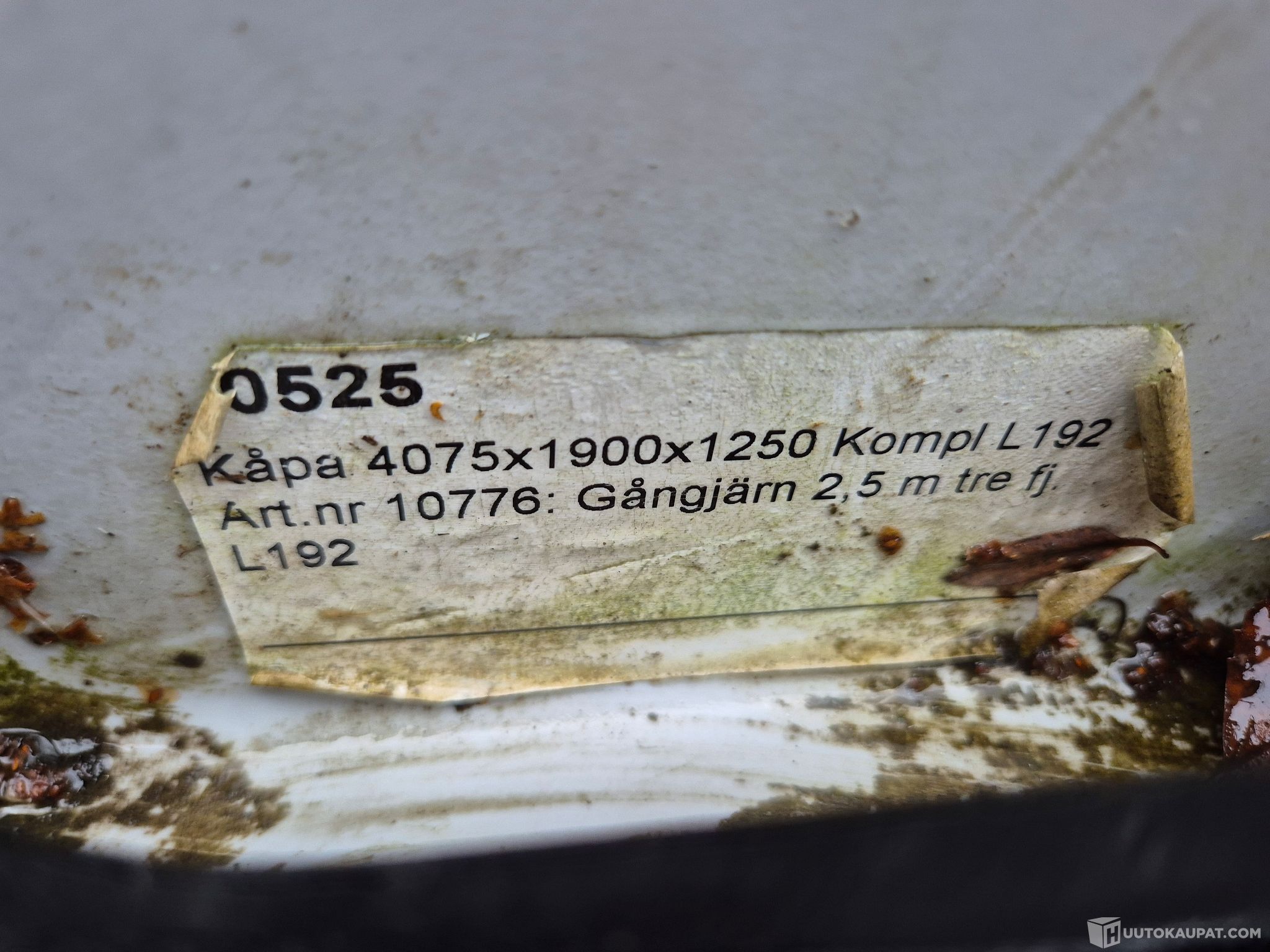 Kuomu ehjä. Mitat 4075x1900x1250