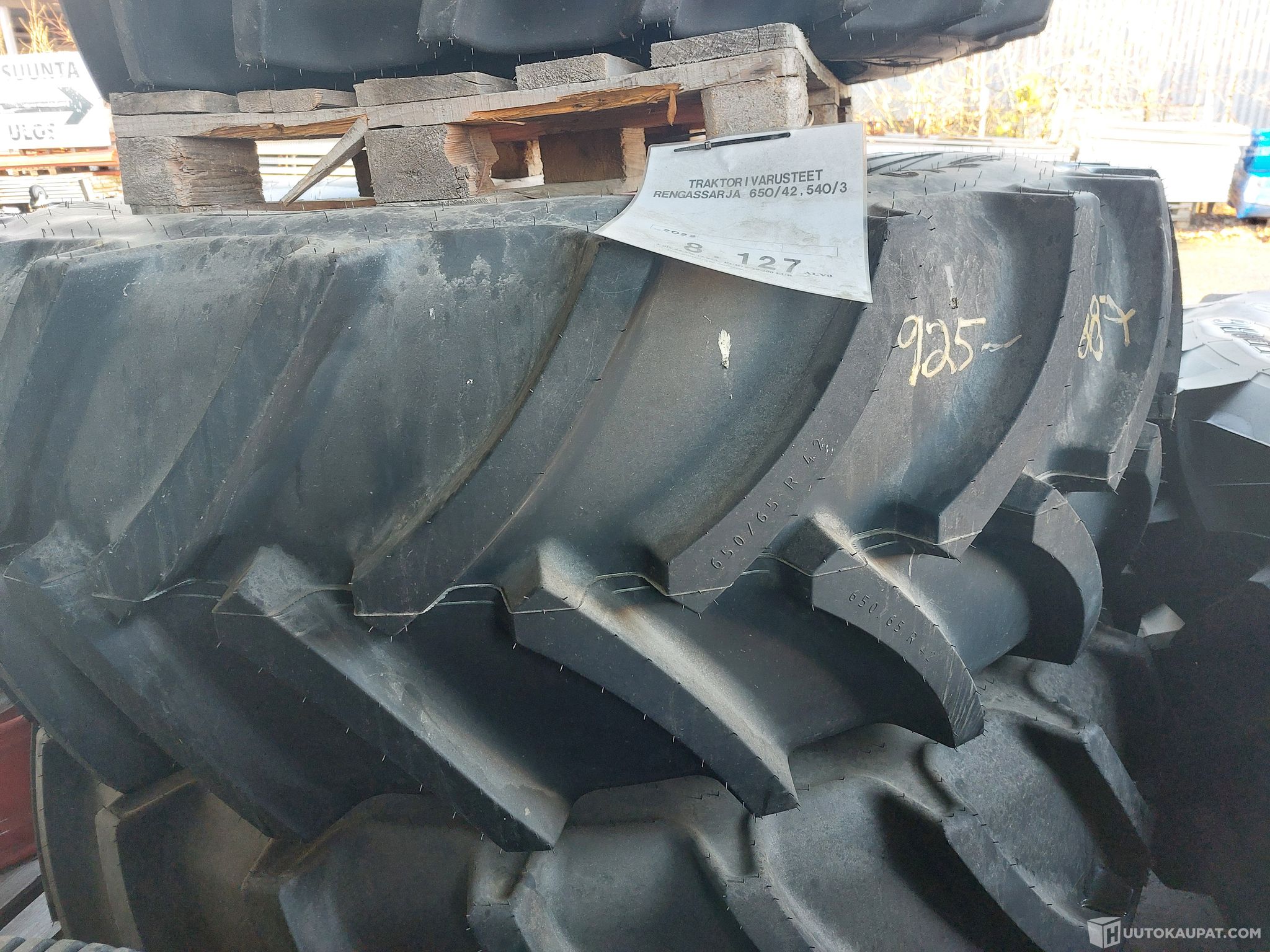 14 tuntia Claas Arion 650-traktorin alla olleet 650/65R42" ja 540/65R30" rengassarja vanteilla. Paketin ovh. yli 10 000 euroa. Asiakas vastaa itse sarjan soveltuvuudesta käyttöönsä. Katon alla säilytetty. Käy myös moneen muuhun merkkiin vanteineen.