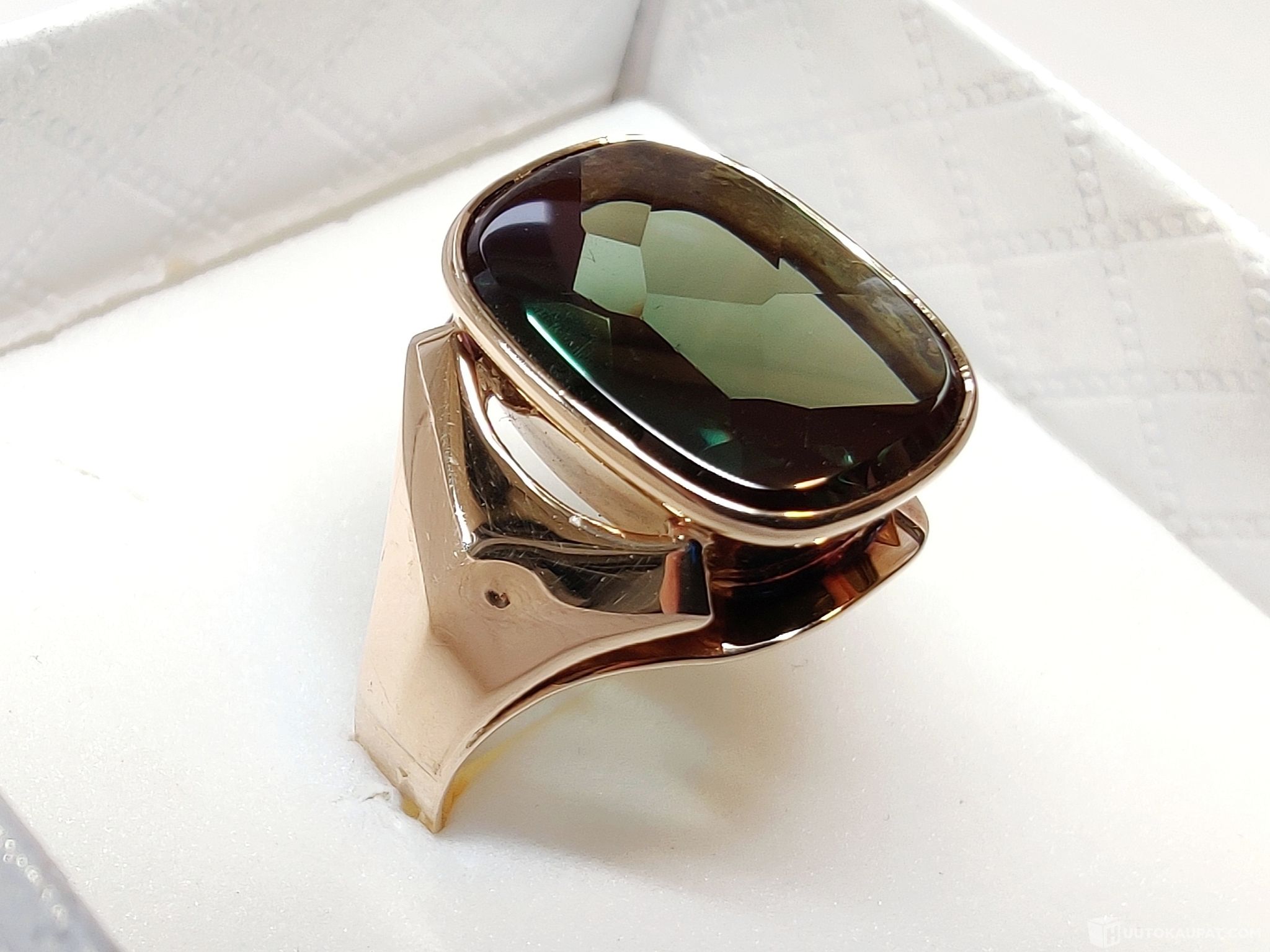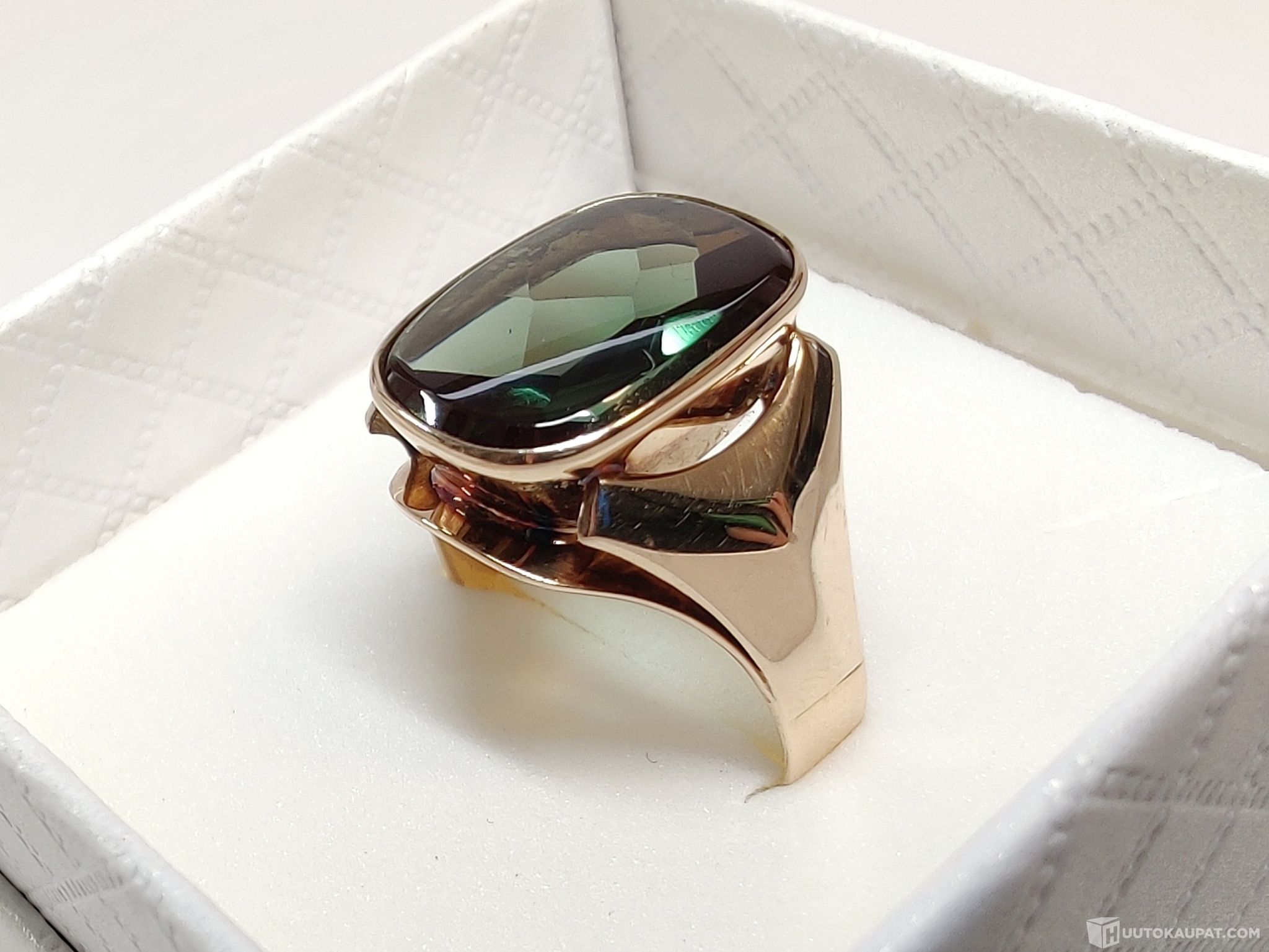 Komea, kotimaisena käsityönä valmistettu turmaliinikantasormus 585 14k kultaa.