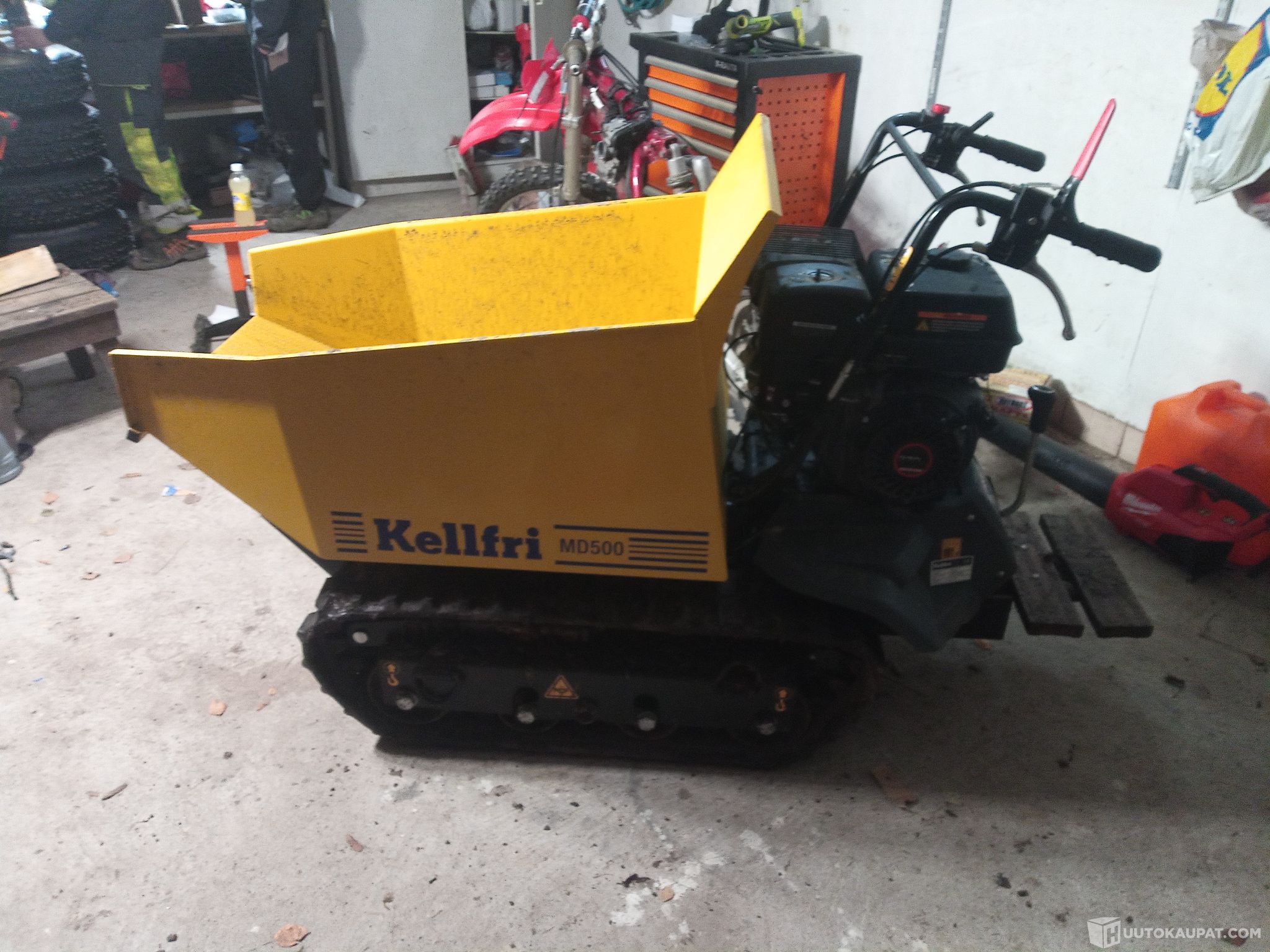Melkein uusi dumpperi bensa koneella ajettu Max 10h. Itse tehty seisoma askelma koneeseen. Hydraulikipillä varustettu.