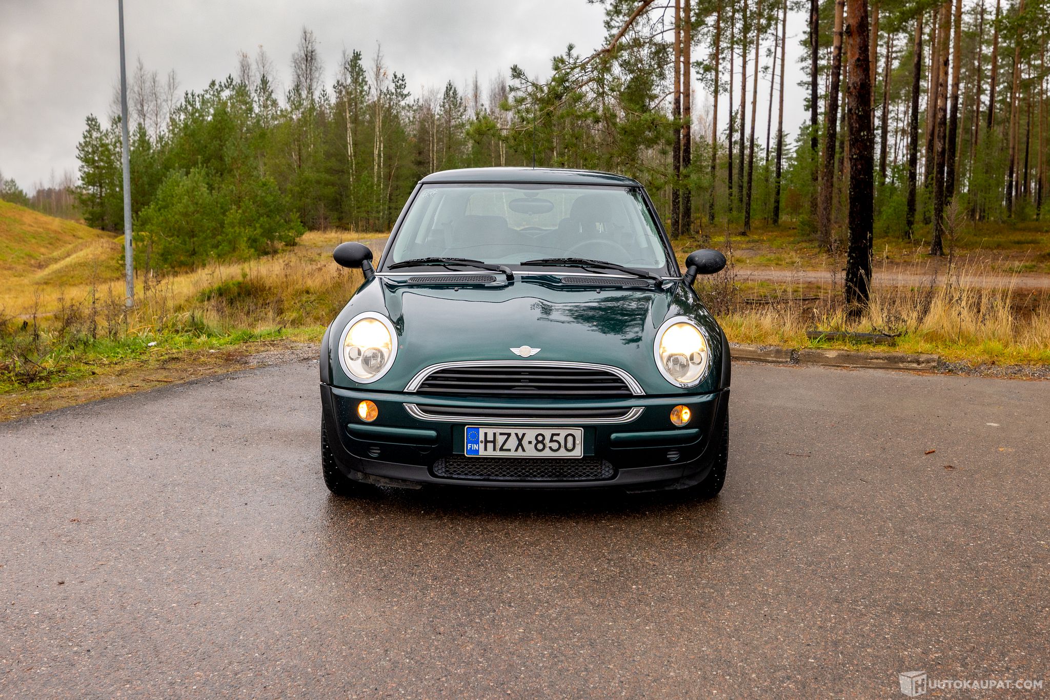 Oikeanpuolen ovessa ruostetta alakulmassa. Konepellissä kiveniskunjälkiä. Tuulilasissa halkeamia.