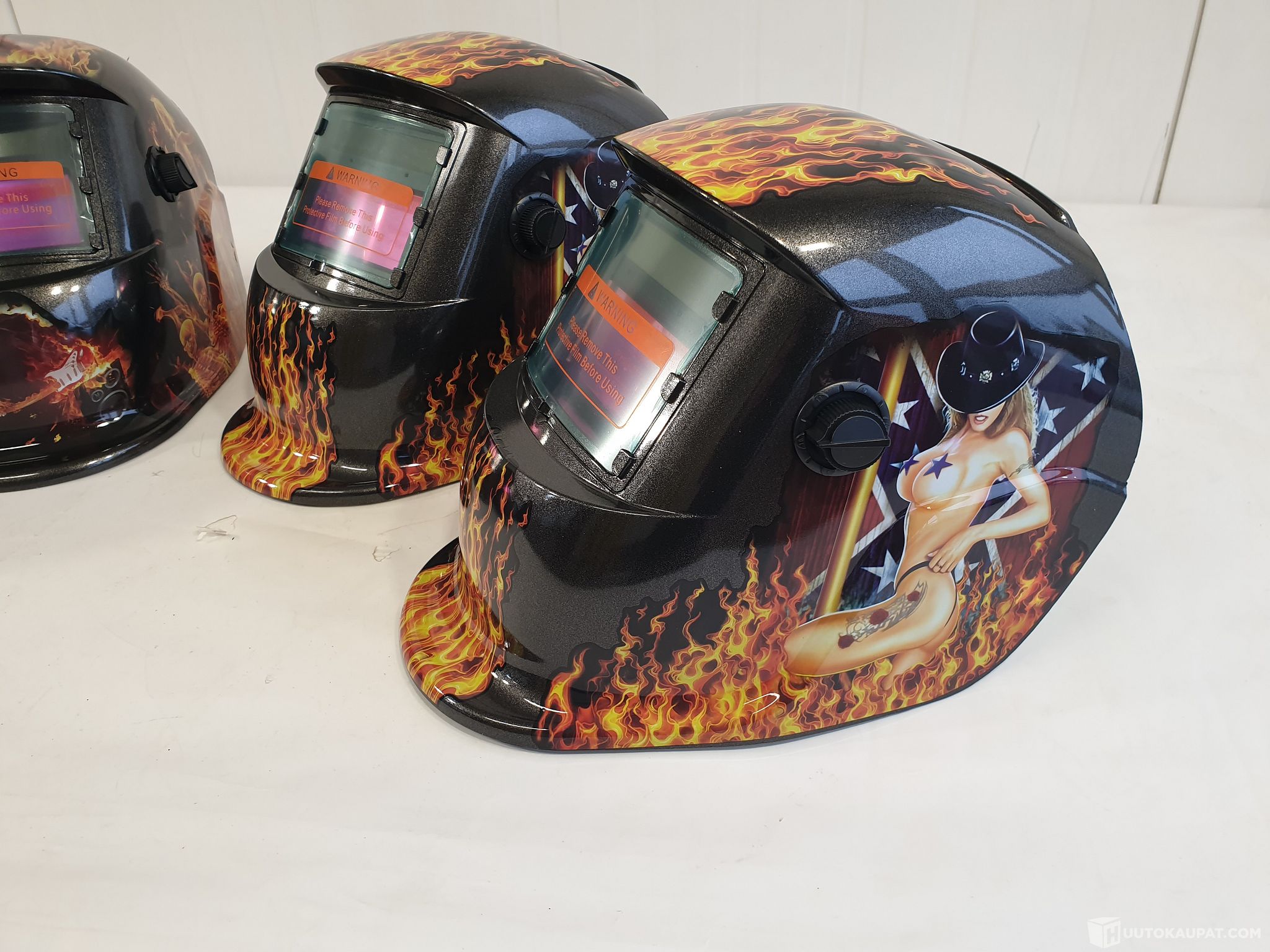 4 kpl Hitsausmaskit - automaattisesti tummuvat hitsauskypärät liekki / "tyttö" kuvalla