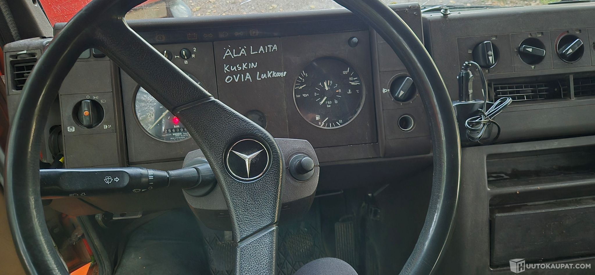 Autoa ei ole katsastettu. Korissa ruostetta, hitsaushommia tiedossa erityisesti takaoven alareunassa. Ohjaamossa kulumaa penkeissä ja jotain reikiä irrotetuista laitteista. Tuulilasissa halkeama.