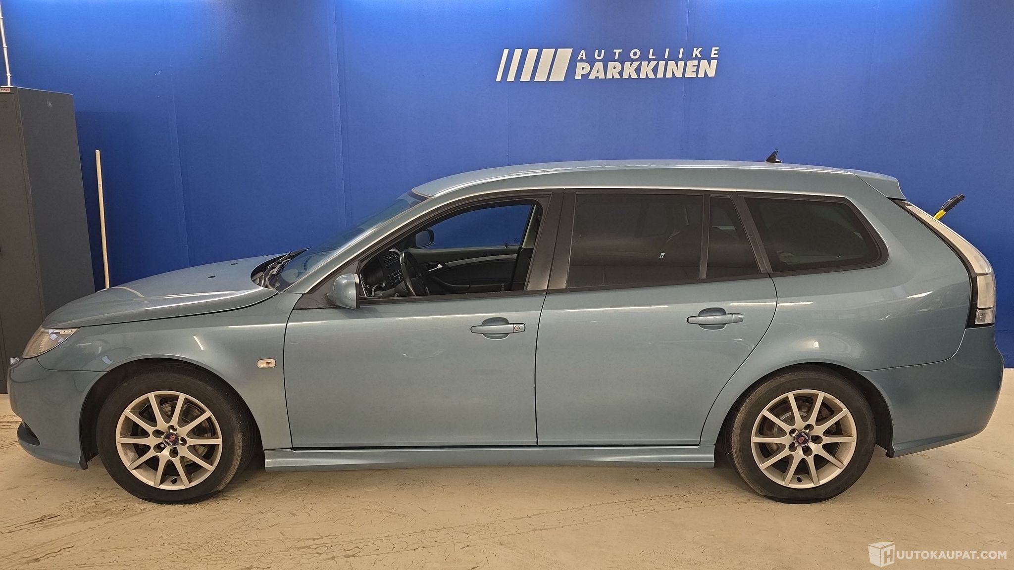 Kahdet hyvät renkaat Saabin omilla alumiinivanteilla.