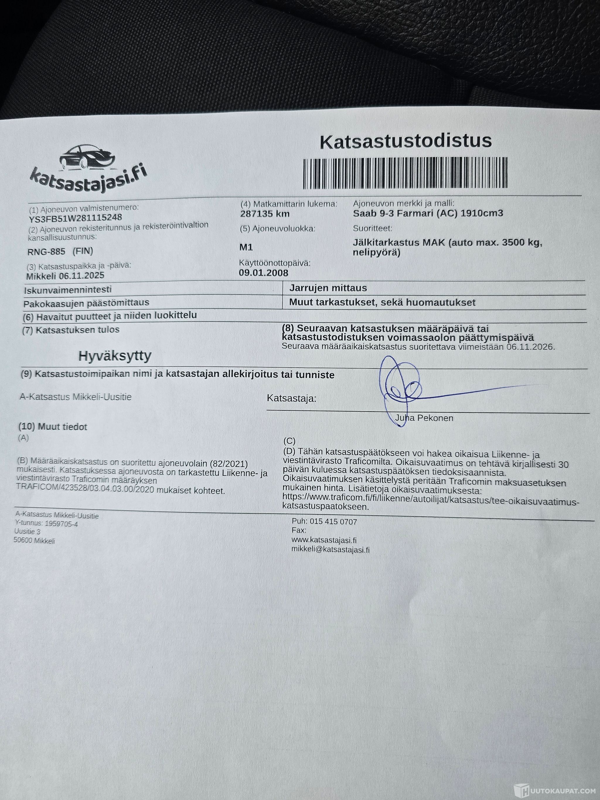 Juuri katsastettu ( 6.11.2025 ) huomautuksitta.