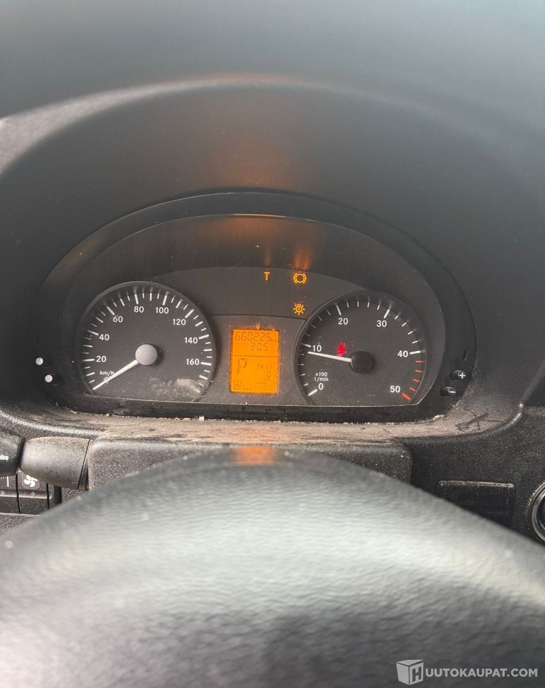 Mittaristossa palaa polttimosta ilmaiseva valo ja jarrupaloista ilmaiseva valo.