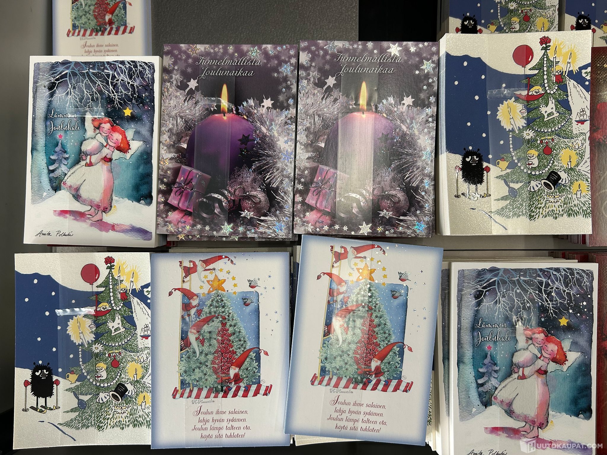 1000kpl poistoerä 1-osaisia Joulukortteja Muumi ym. Lajitelmana sh.1500,00€, Mikkeli