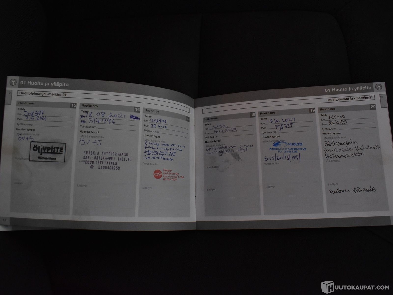 Kattava huoltohistoria kirja + kuitit