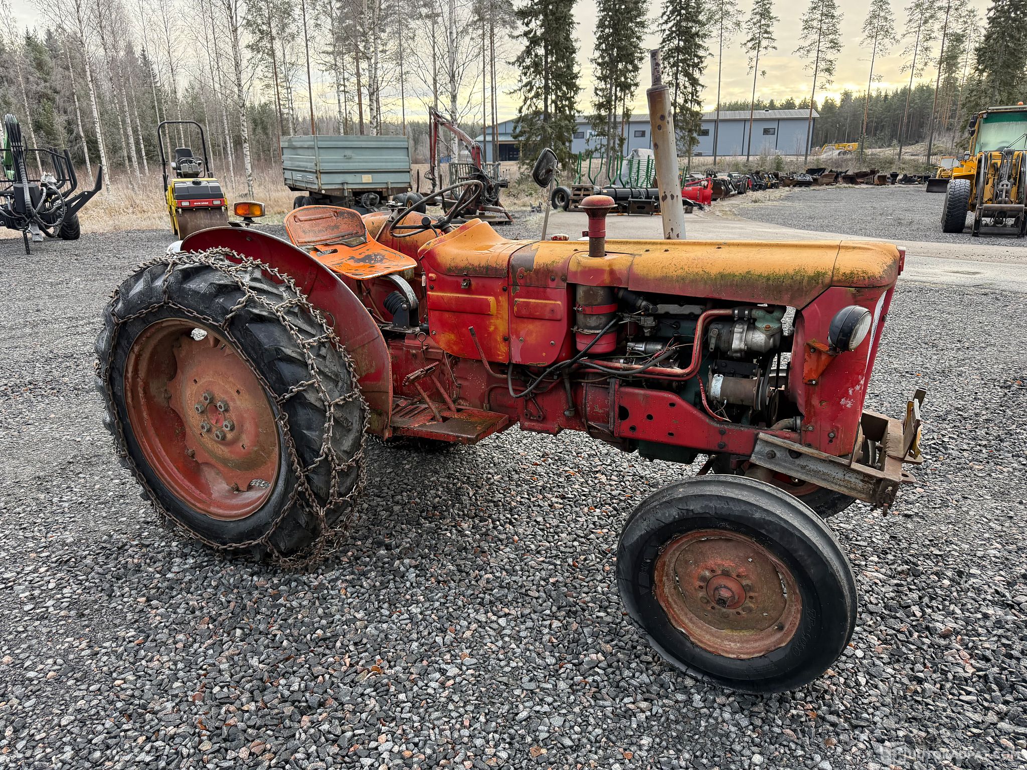 Volvo BM 400 traktori jääketjuilla.