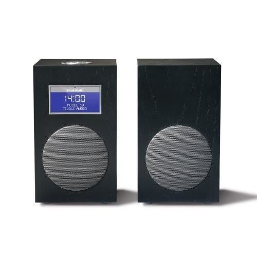 Paketissa: Tivoli Audio Model 10, Musta pöytäradio, Stereokaiutin, Virtalähde & Kaukosäädin.