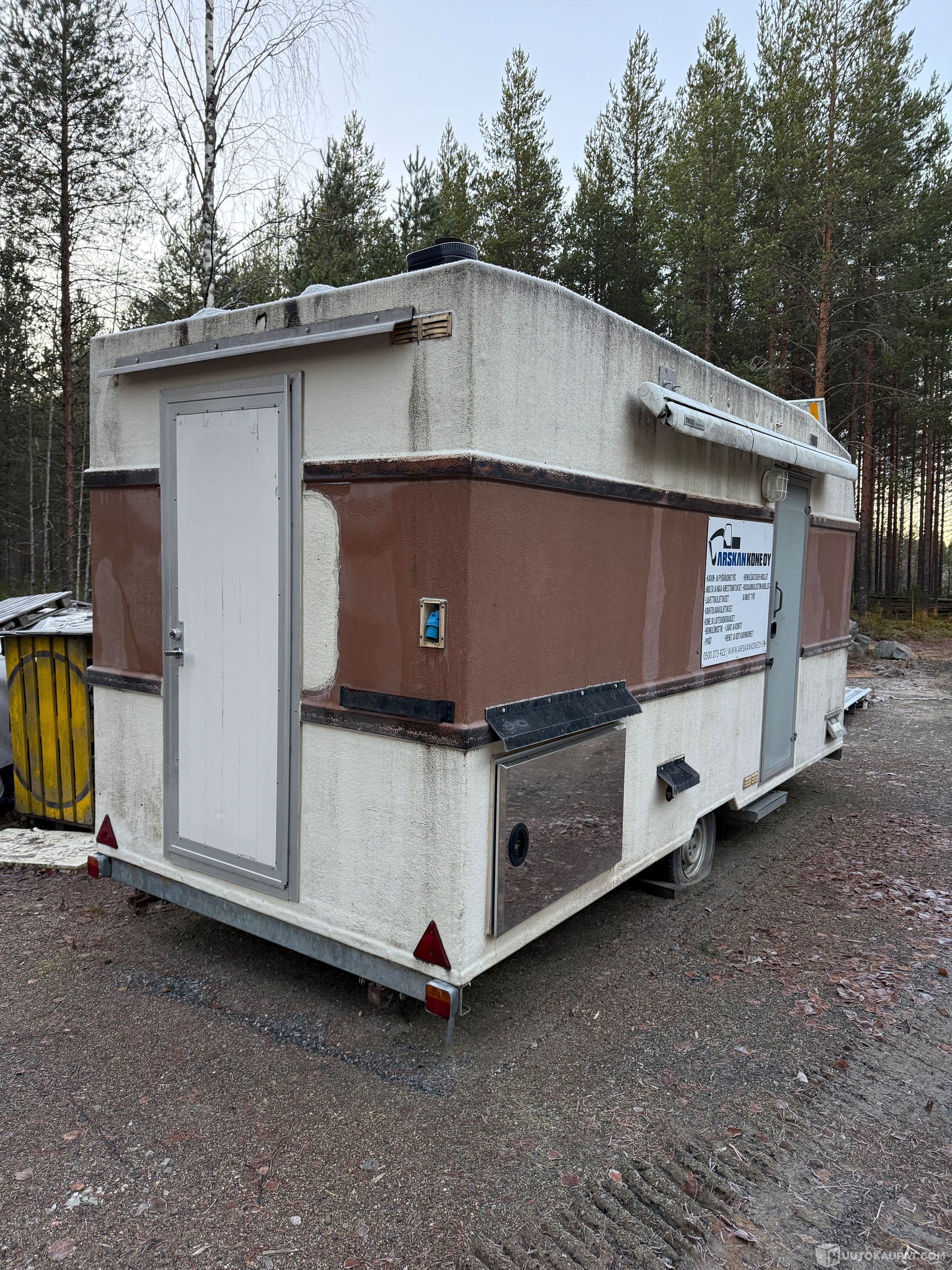 Tästä työmaalle taukotila tai metsälle tukikohta.