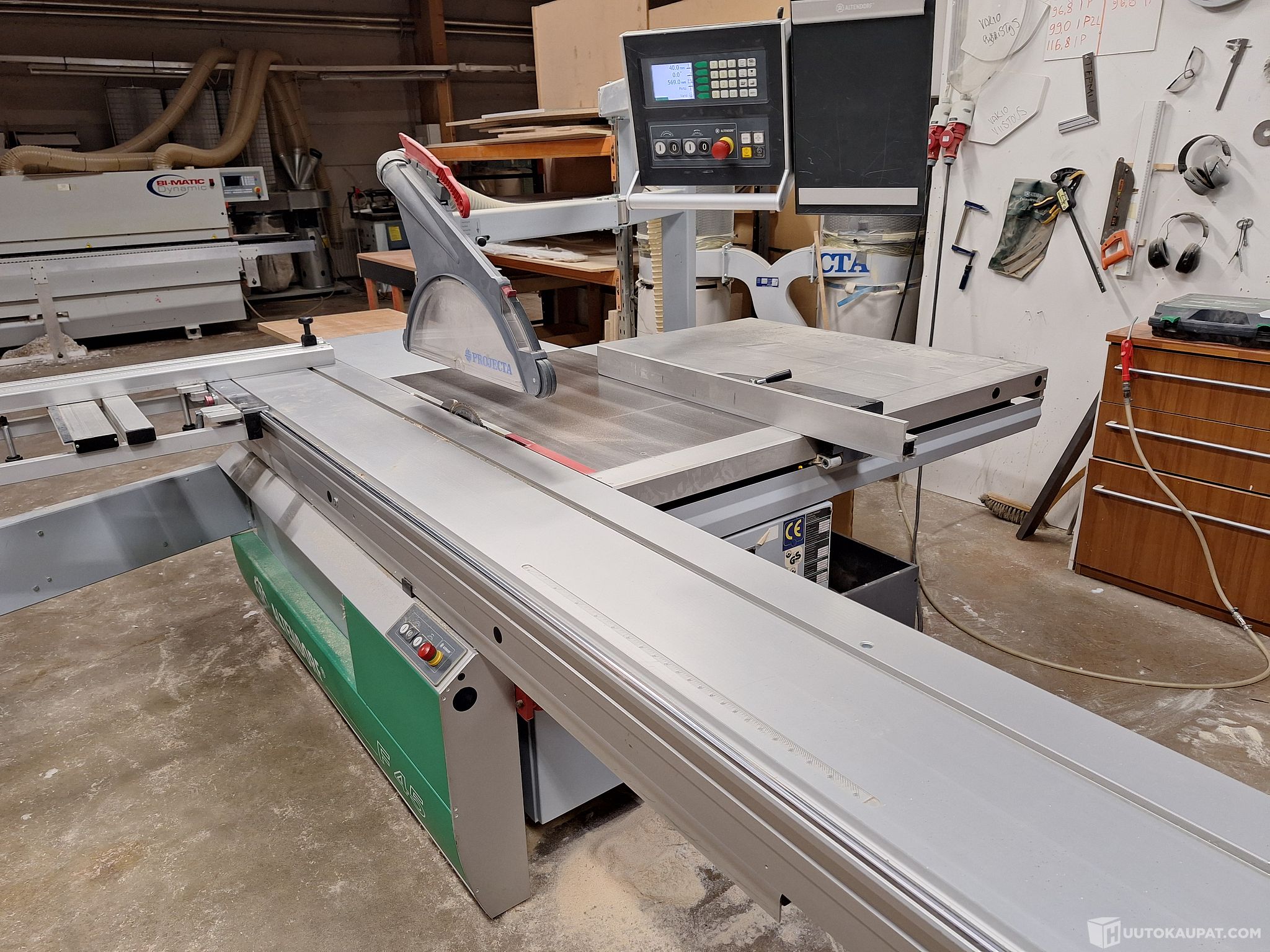 1kpl Altendorf F45 tarkistuspyörösaha + imuri (laitteiden virrat toimii, koneet pyörii)
