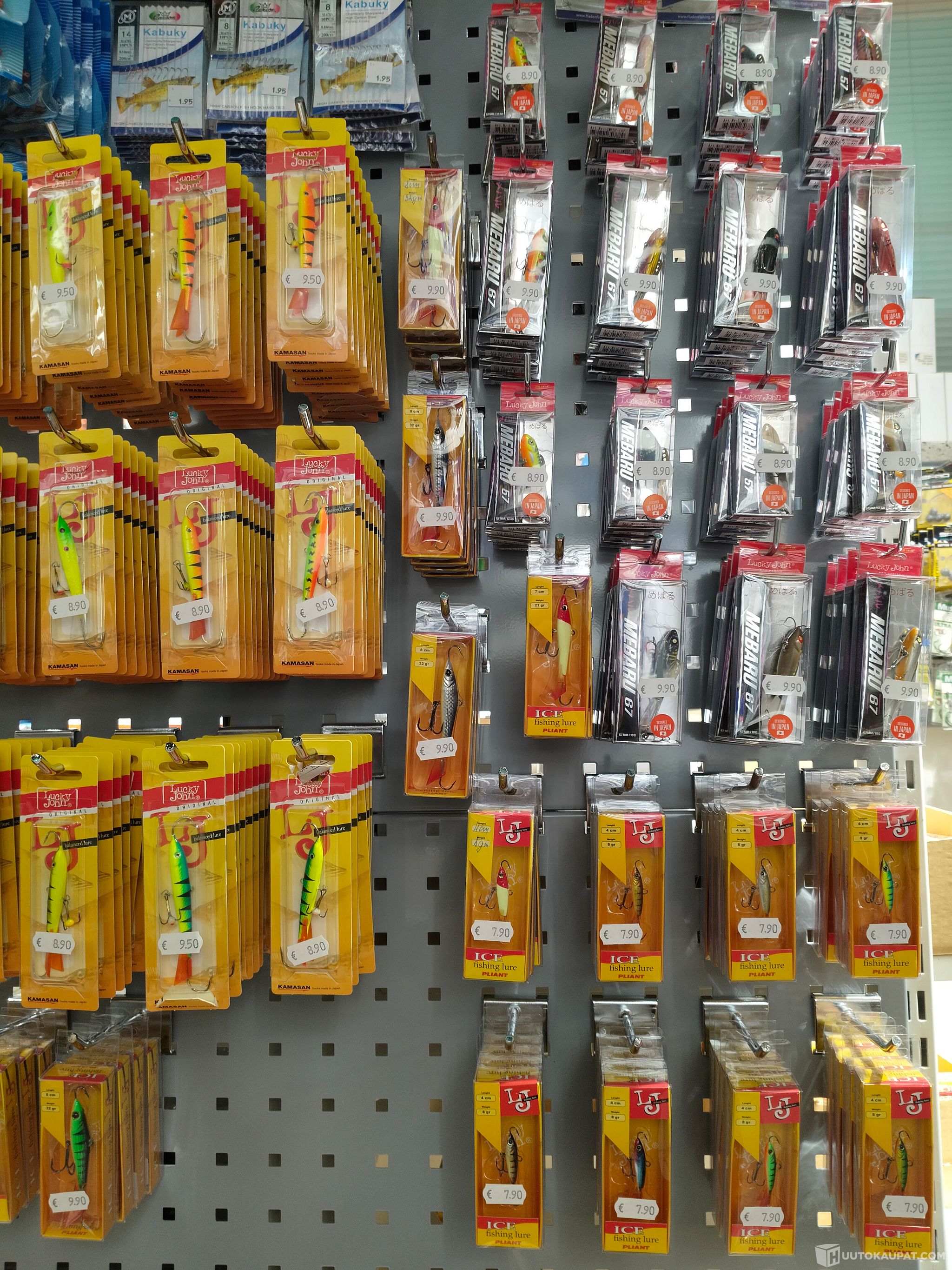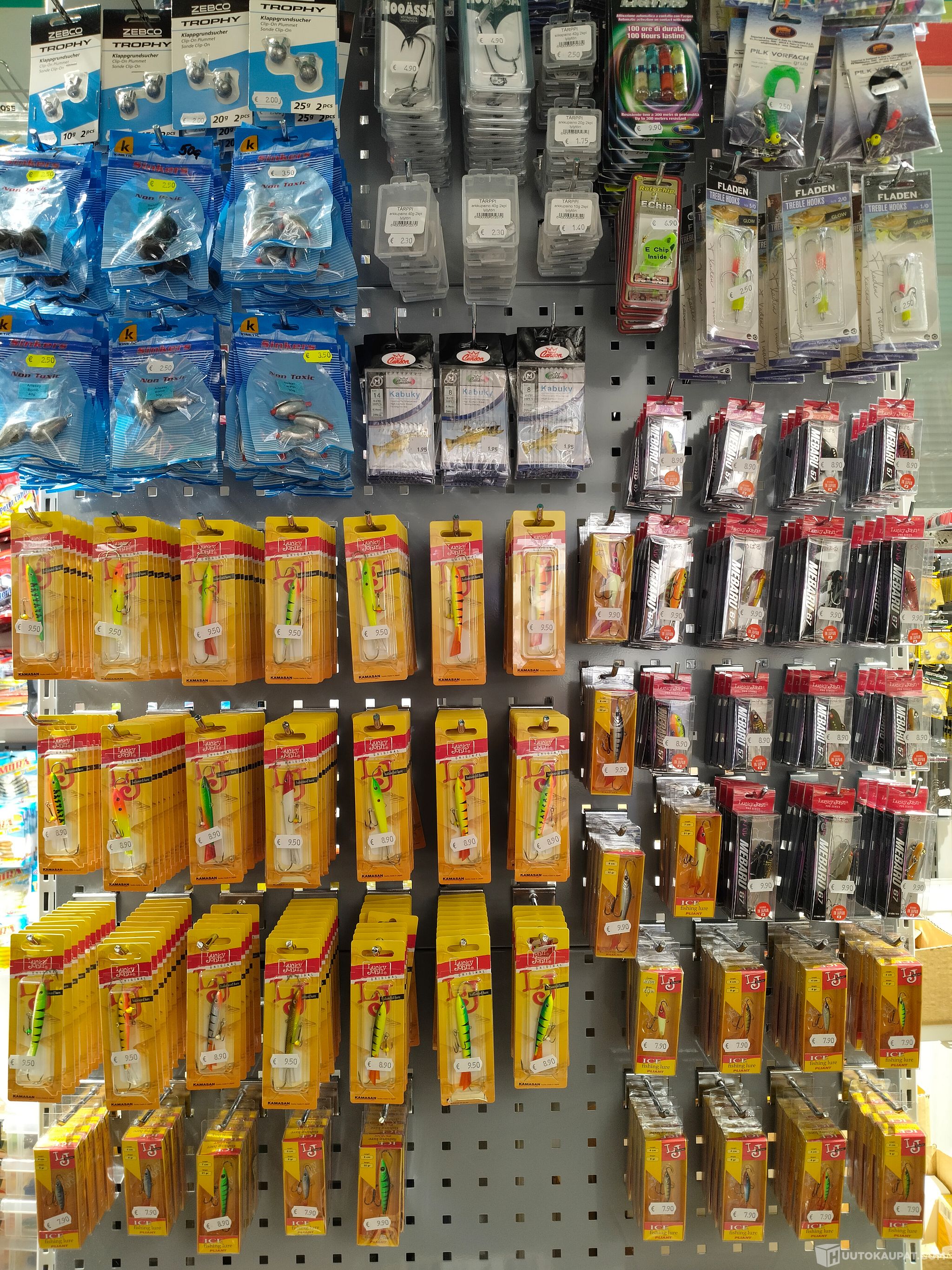 Tunnettuja merkkejä mm. Lucky John, Kamasan, Fladen, Zebco Trophy, E-Chip, Hooassa, Kabuky jne.