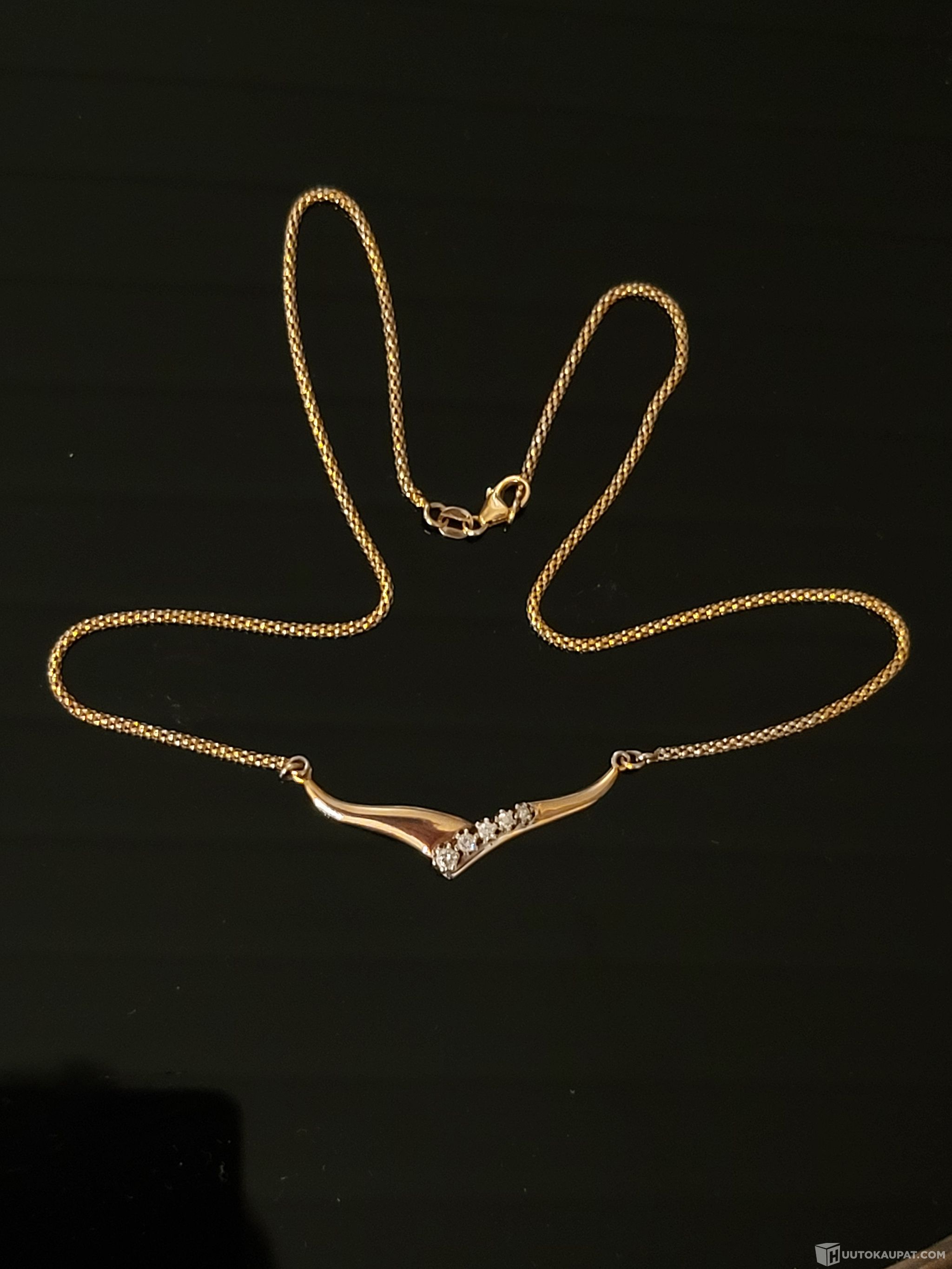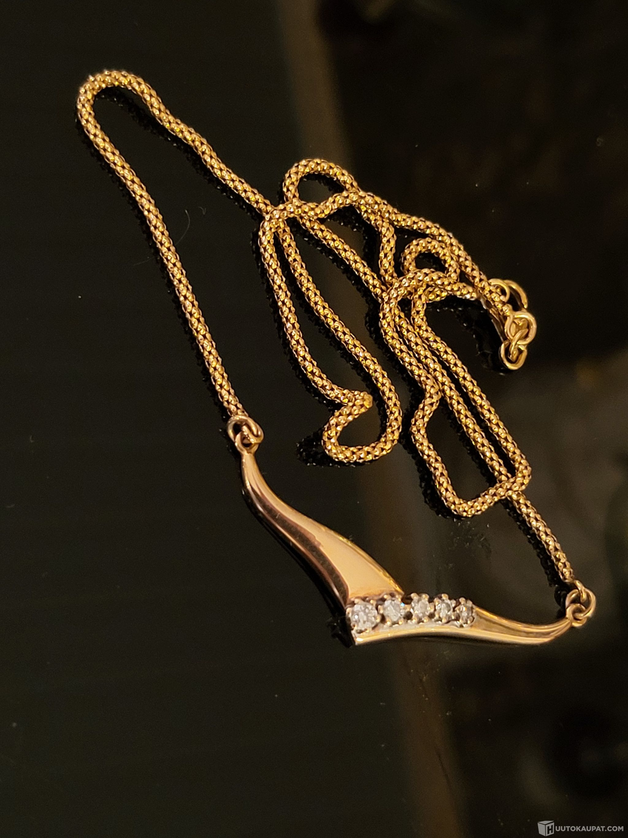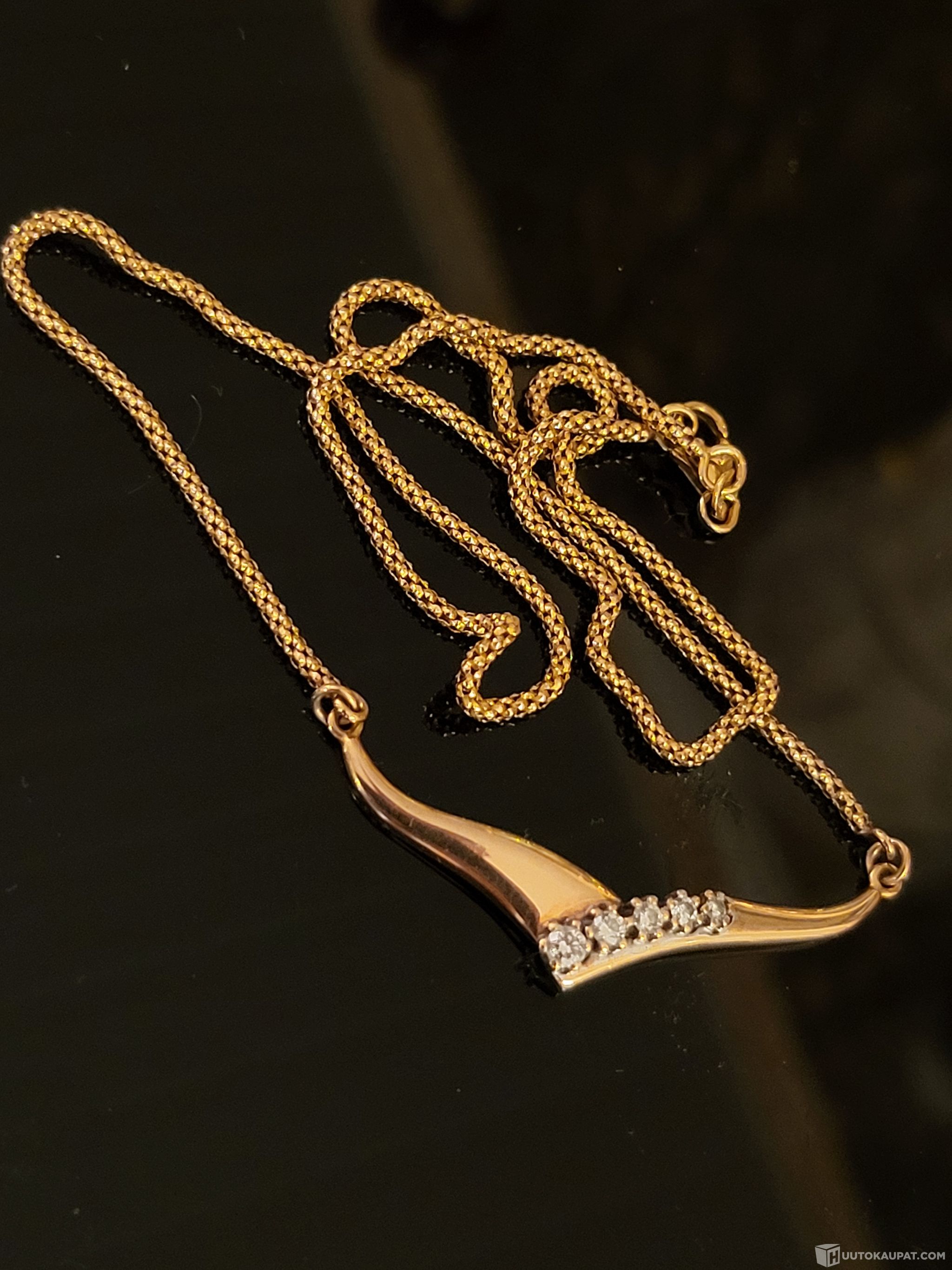 14K 585 Kultainen timanttikaulaketju - 5 timanttia