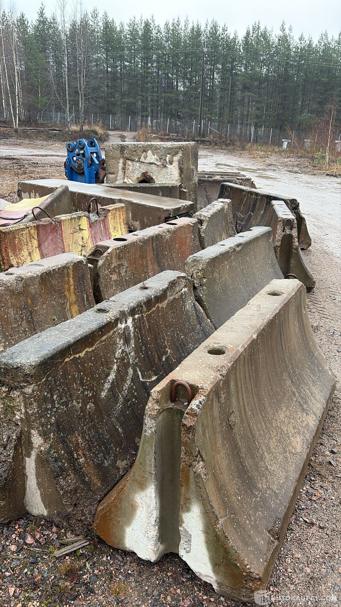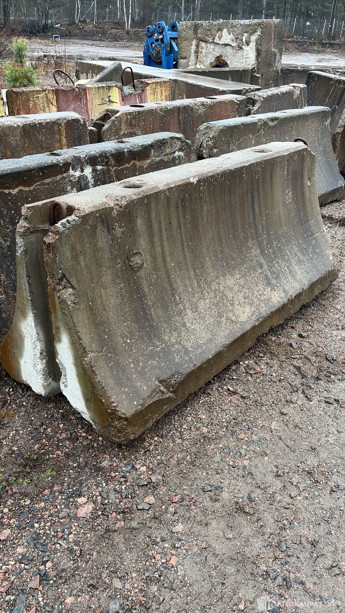 Vanhoja jo pidempään kentällä olleita, säätiloille alttiissa olosuhteissa säilytettyjä betonipainoja.