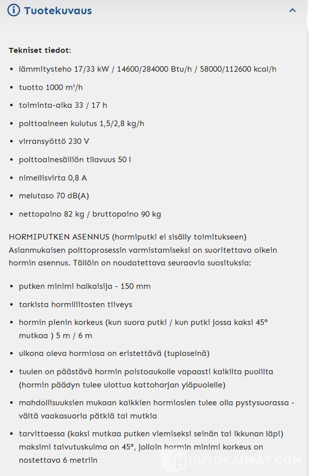 Hallilämmitin 33Kw moniöljy Master