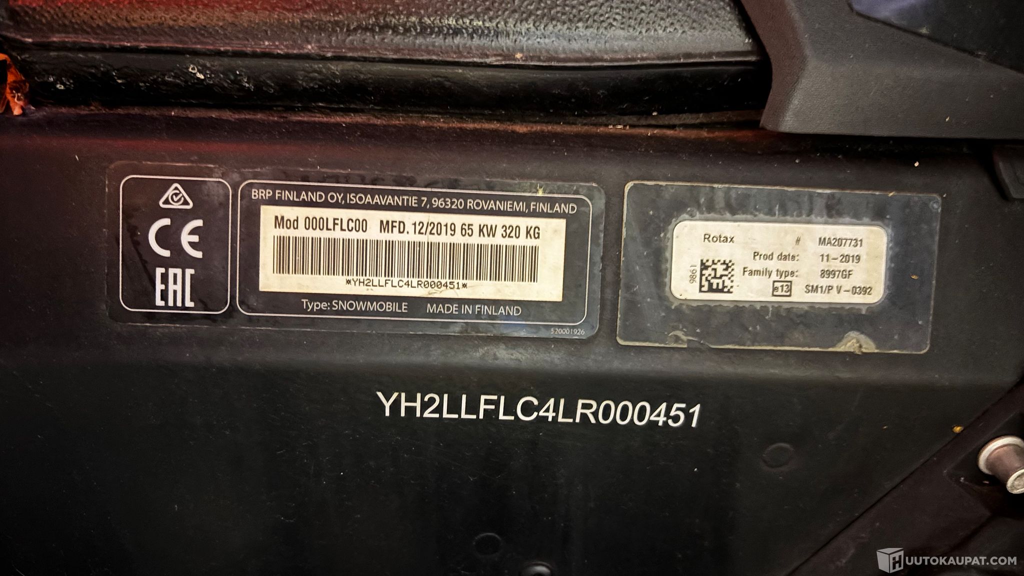 Ajettu n.13500 km, Tarkkaa mittarilukemaa ei saatu koska kelkan akku aivan tyhjä.