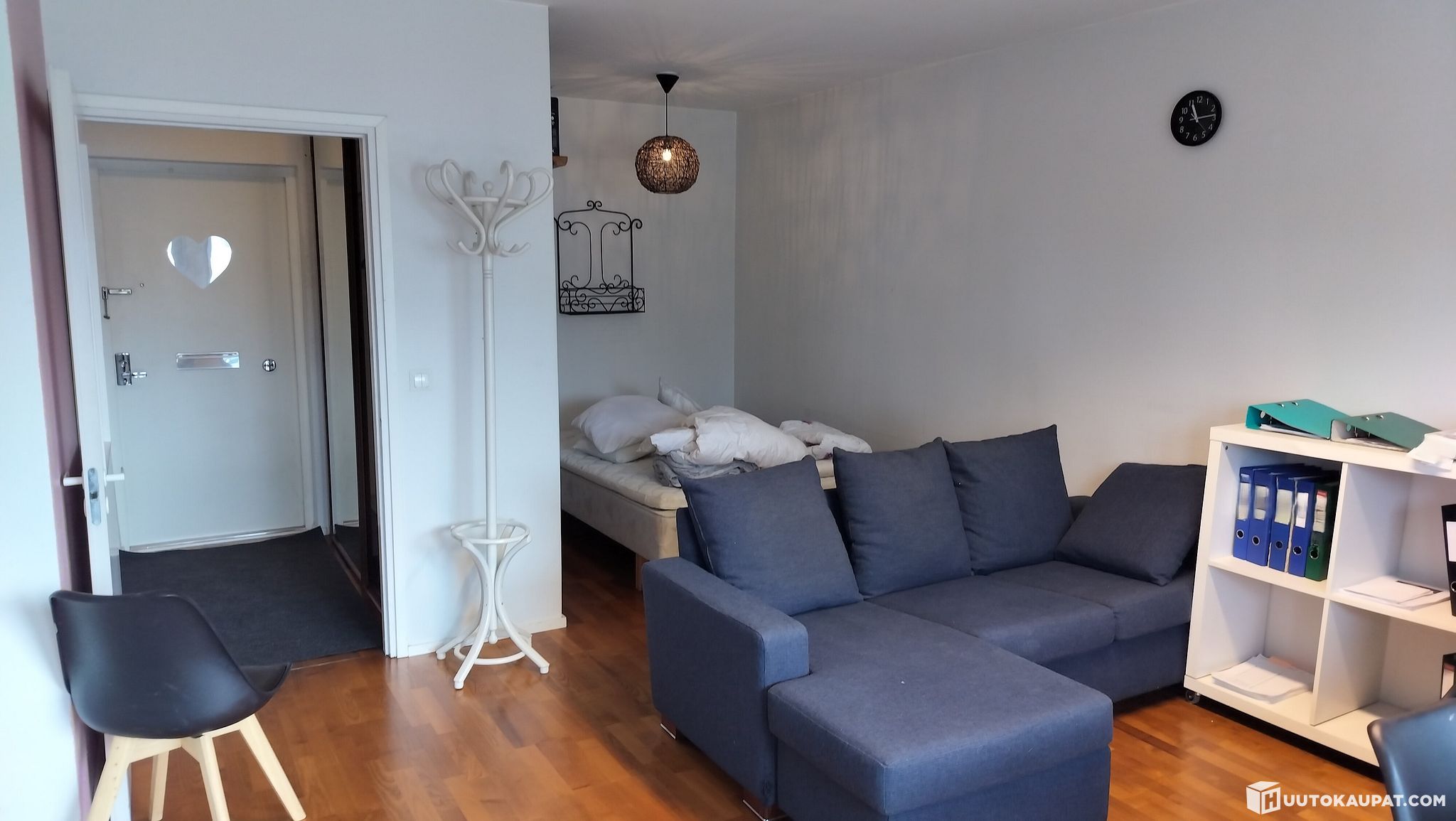 utmätta aktierna i bolaget Asunto Oy Nurmon Keskustie, nummer 1540-1613, vilka ger rätt till förvaltning av en bostadslägenhet 1 r + kvr på m², belägen på adressen Nurmontie 17 B 14, 60550 Nurmo.