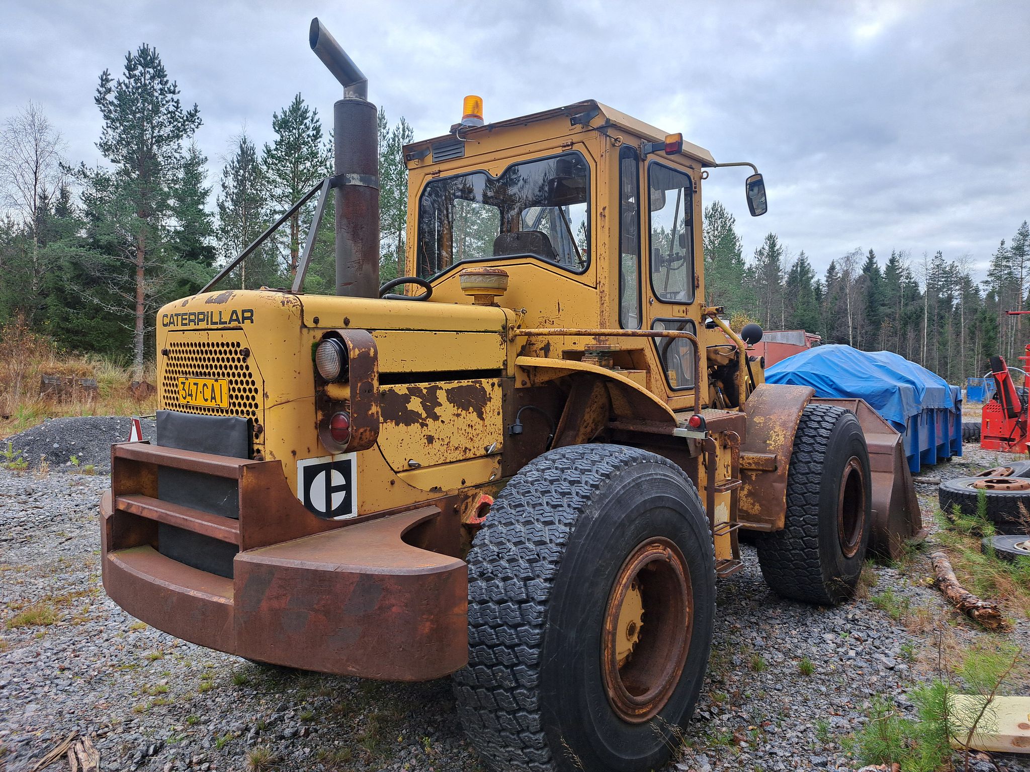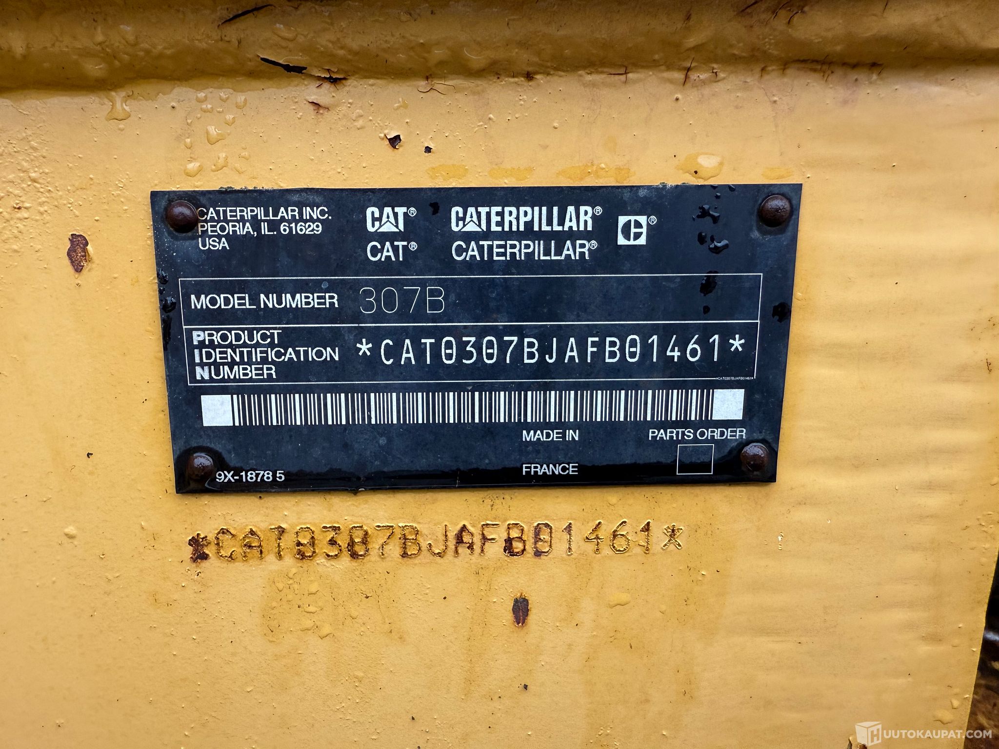 Ikäisekseen kohtuu siisti ja ehjän oloinen Caterpillar 307B pois lukien kääntökehällä oleva välys