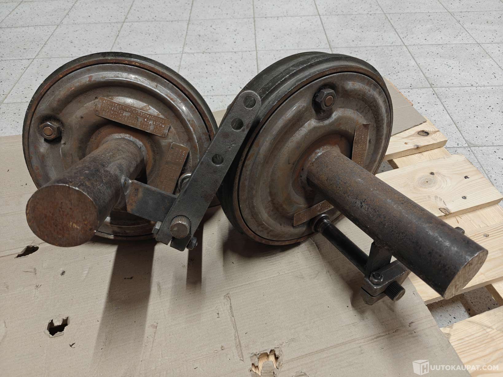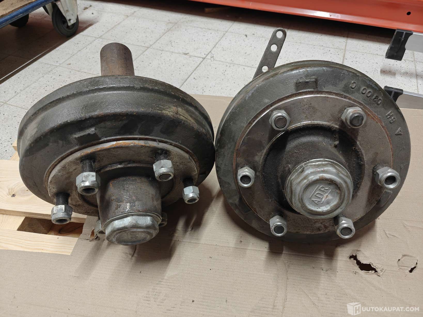 Myydään kaksi (2) kpl traktorin perävaunun napoja, joissa on sisäpuolinen jarru.