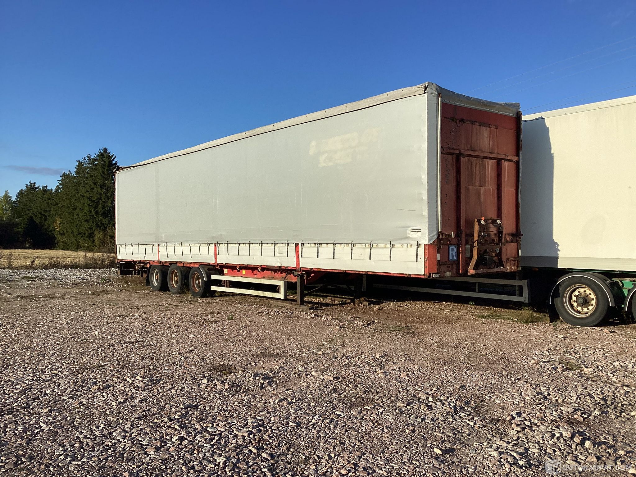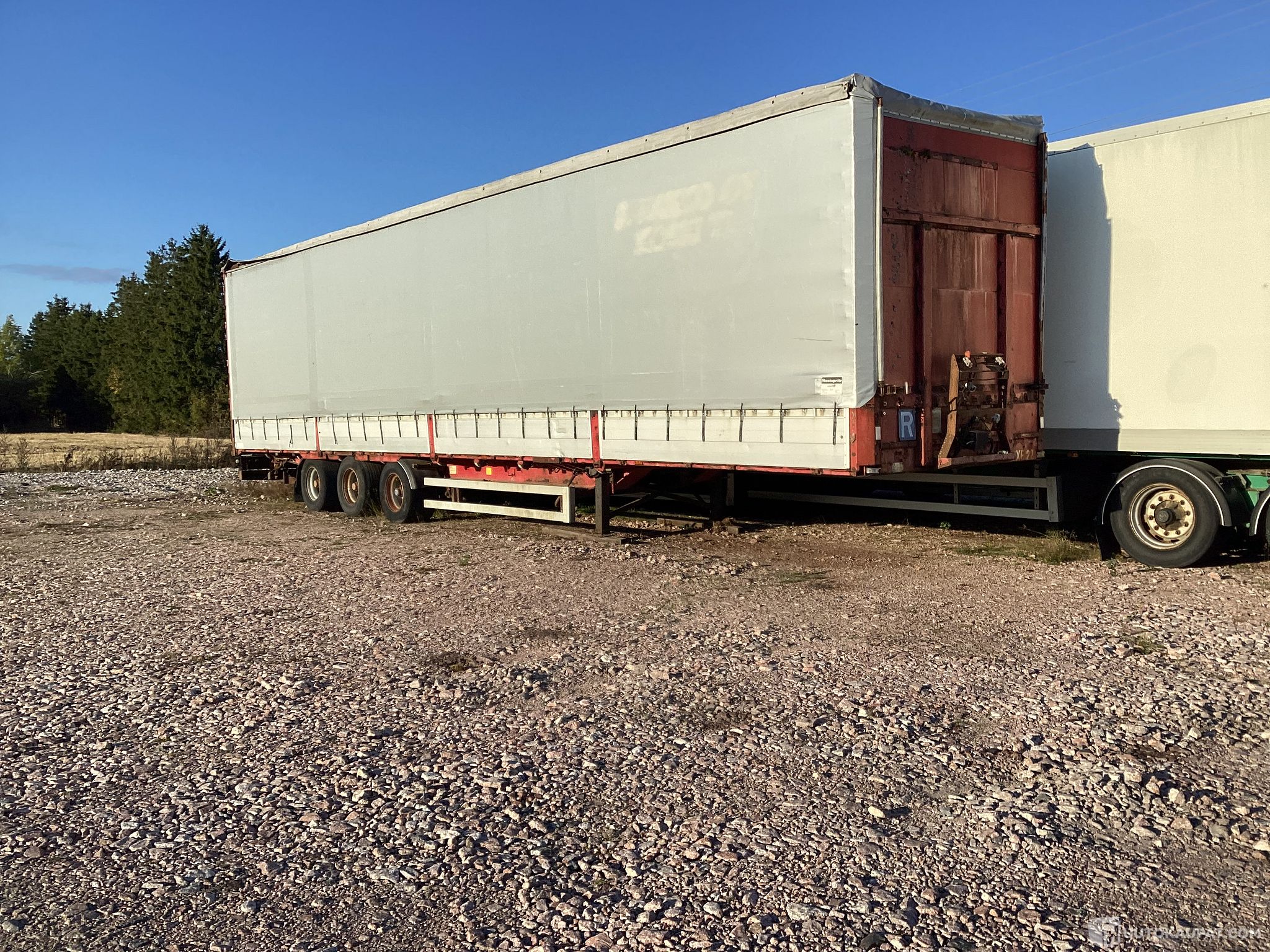 Mega kärry ,katsastamaron mutta kapellit /pressut uusittu muutama vuosi sitten joten ehjät.rengas koko 445/45x19;5.liukusivut ja katto.